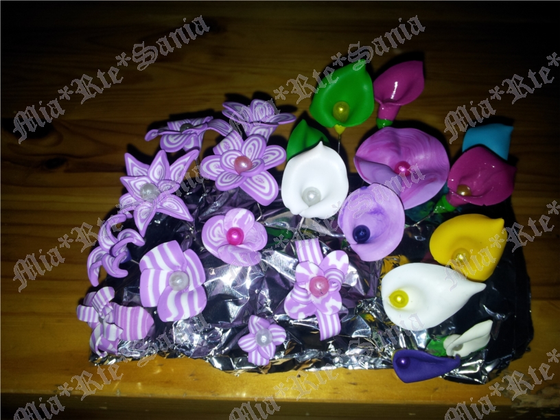 FLORES HECHAS DE FIMO.COLORES VARIOS.