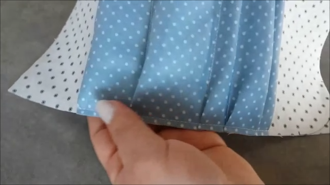 Una vez puesta esta primera parte de bies, se le deben hacer unos pequeños cortes a lo largo de la curva para ayudarlo a adaptarse a la misma, se voltea para colocarlo en su posición final y se plancha.
