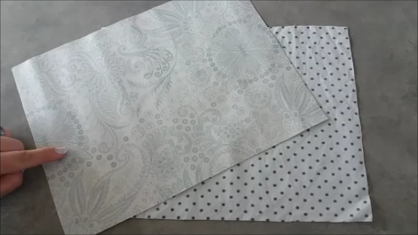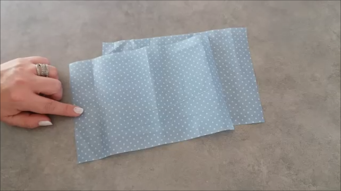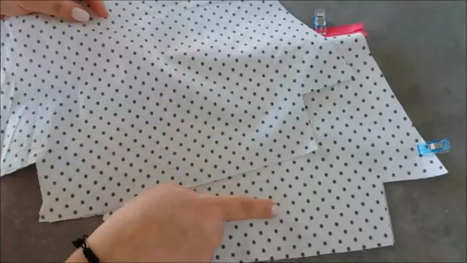 Preparado esto, lo vamos a unir con la otra pieza de 30x22cm de forma que los lados del derecho queden visibles y también colocamos la solapa protectora, así: