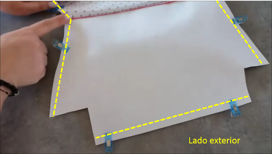 Ahora hacemos lo mismo con el otro lado, ponemos la otra pieza exterior encima, con el derecho hacia abajo.