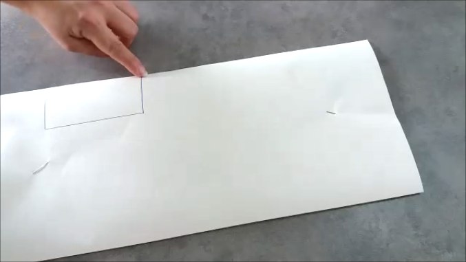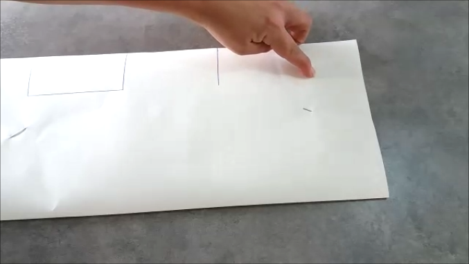 Y lo doblamos a la mitad por el lado de los 41 cm de forma que te quede el papel doblado con unas medidas de 18x41cm y por el lado más largo vamos a marcar un punto a los 5,5 cm del borde y desde allí trazamos una línea hacia abajo de 5 cm.