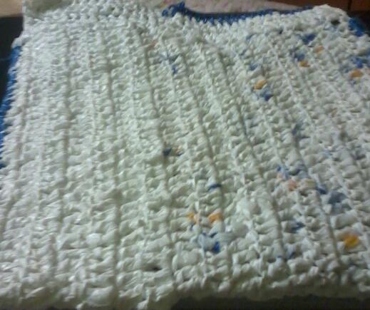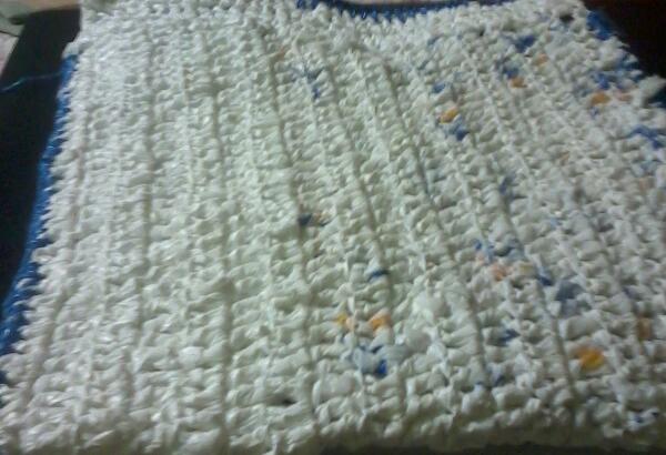 Este proyecto de cosmetiquero reciclado, está realizado con bolsas de supermercado tejido a crochet y unido con hilo en los bordes, la flor para decorar está realizada teambién en hilo.