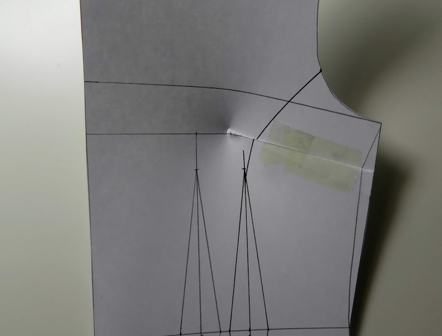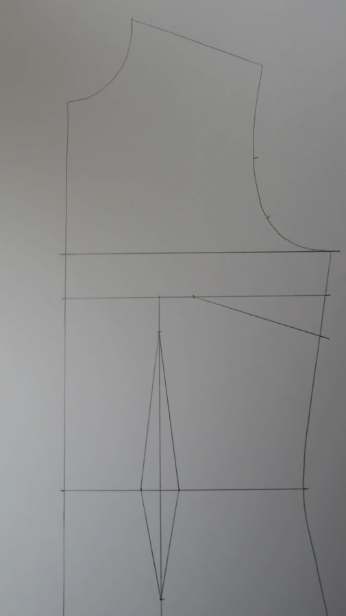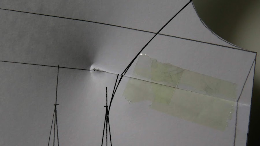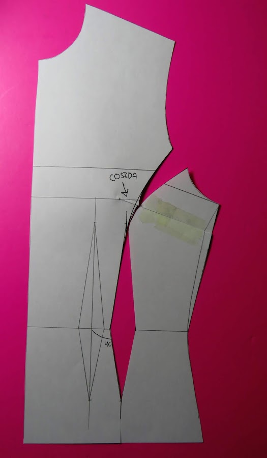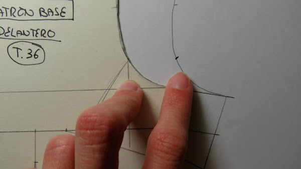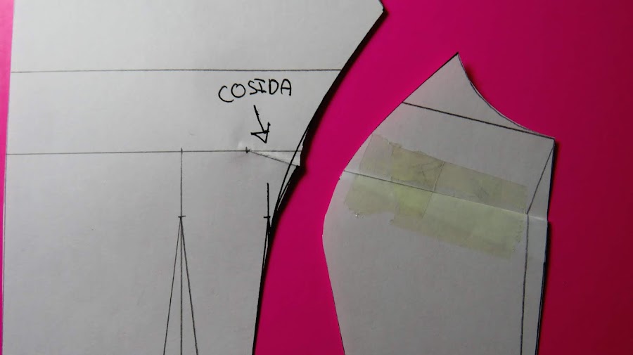 Es importante tener señalado este punto, que sería el punto 3 de nuestro patrón base, el de la sisa, ya que nos ayudará a ver hacia donde llevar nuestro costadillo, aunque si no lo marcas, lo puedes situar a ojo
