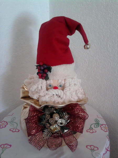 Polar, fieltro, galón, hilo dorado, pick y delcrón. Mide 70 cms de alto. Esta pieza requiere de bastante relleno, por lo que pesa y para darle soporte se requiere de una base plana para el cuerpo, ela ...