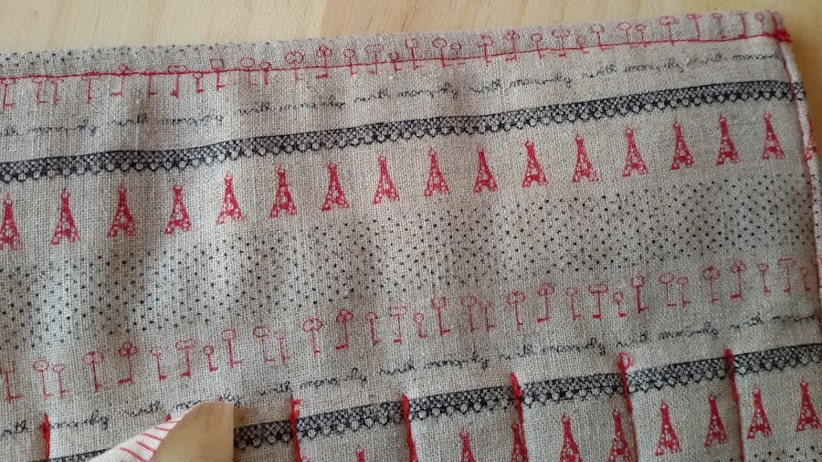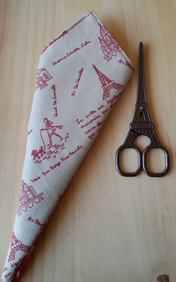 Tanto para la funda de ganchillos como para la funda de tijeras utilicé unos linos que tenía con estampados franceses con la Torre Eiffel incluida. Y unas tijeras de la Torre Eiffel para rematar el regalo.