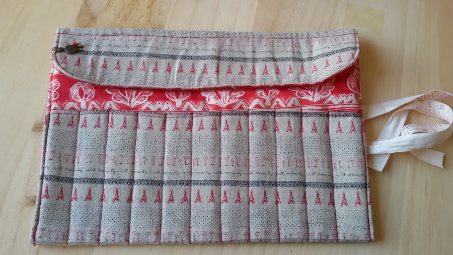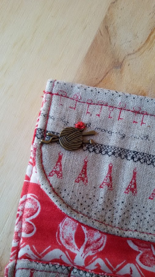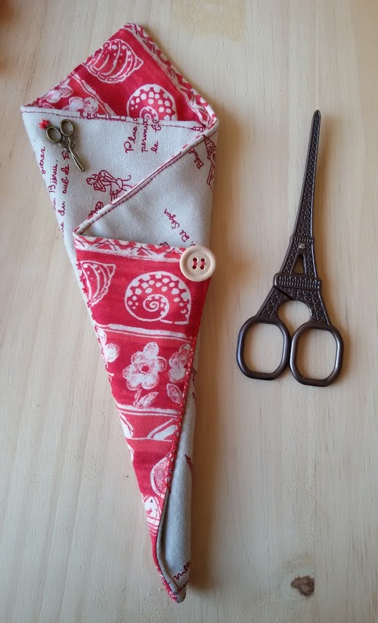 A la chica que le envié le gusta mucho el color rojo y la torre Eiffel, hace ganchillo y necesitaba una funda para las tijeras.
