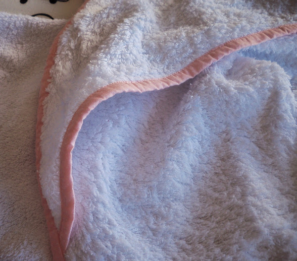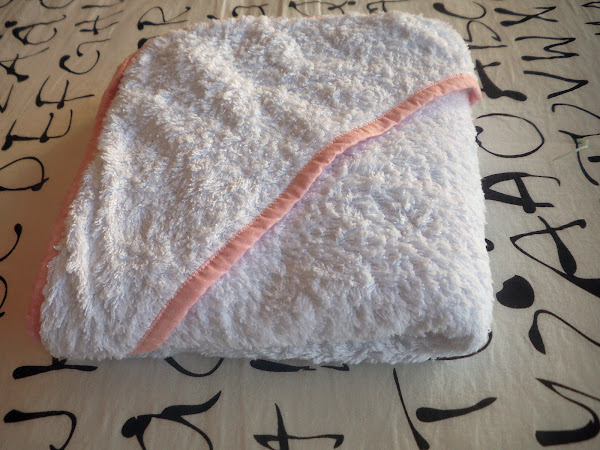 Ya veis que la toalla es muy mullidita y amorosa. La hice bastante grande para arroparla bien. Mide 1m x 1m. Le hice la capuchita aunque casi nunca se la ponemos, es demasiado grande para ella y le tapa toda la cara.