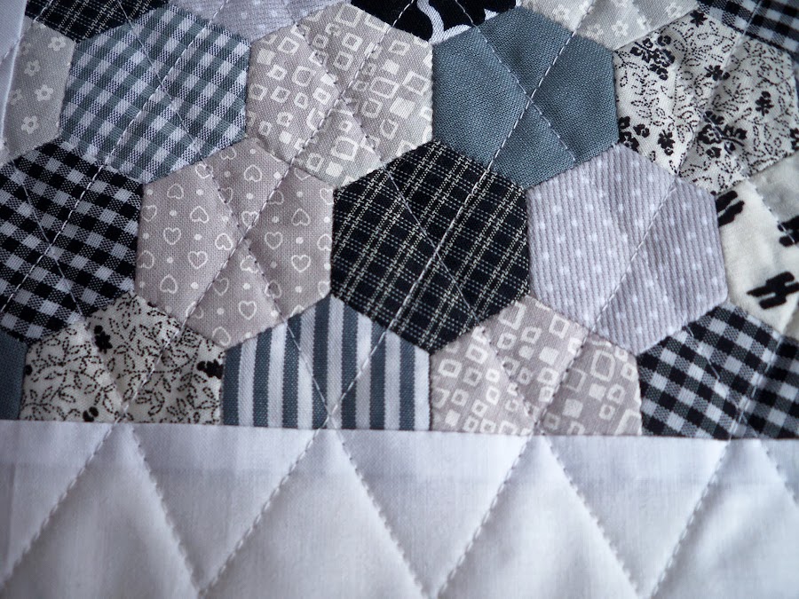 El acolchado fue muy simple, unas lineas atravesando algunos de los hexágonos.