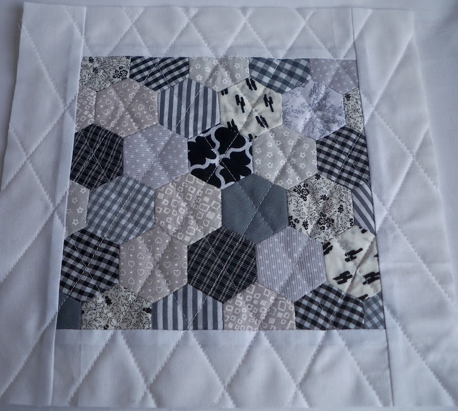 La tela trasera ya está encargada y supongo que la tendré en Navidades, así que por ahora sólo me queda seguir cosiendo hexágonos, que lo hago algunas noches mientra veo un poquito de televisión.