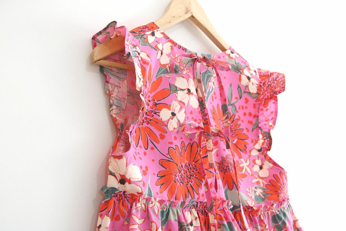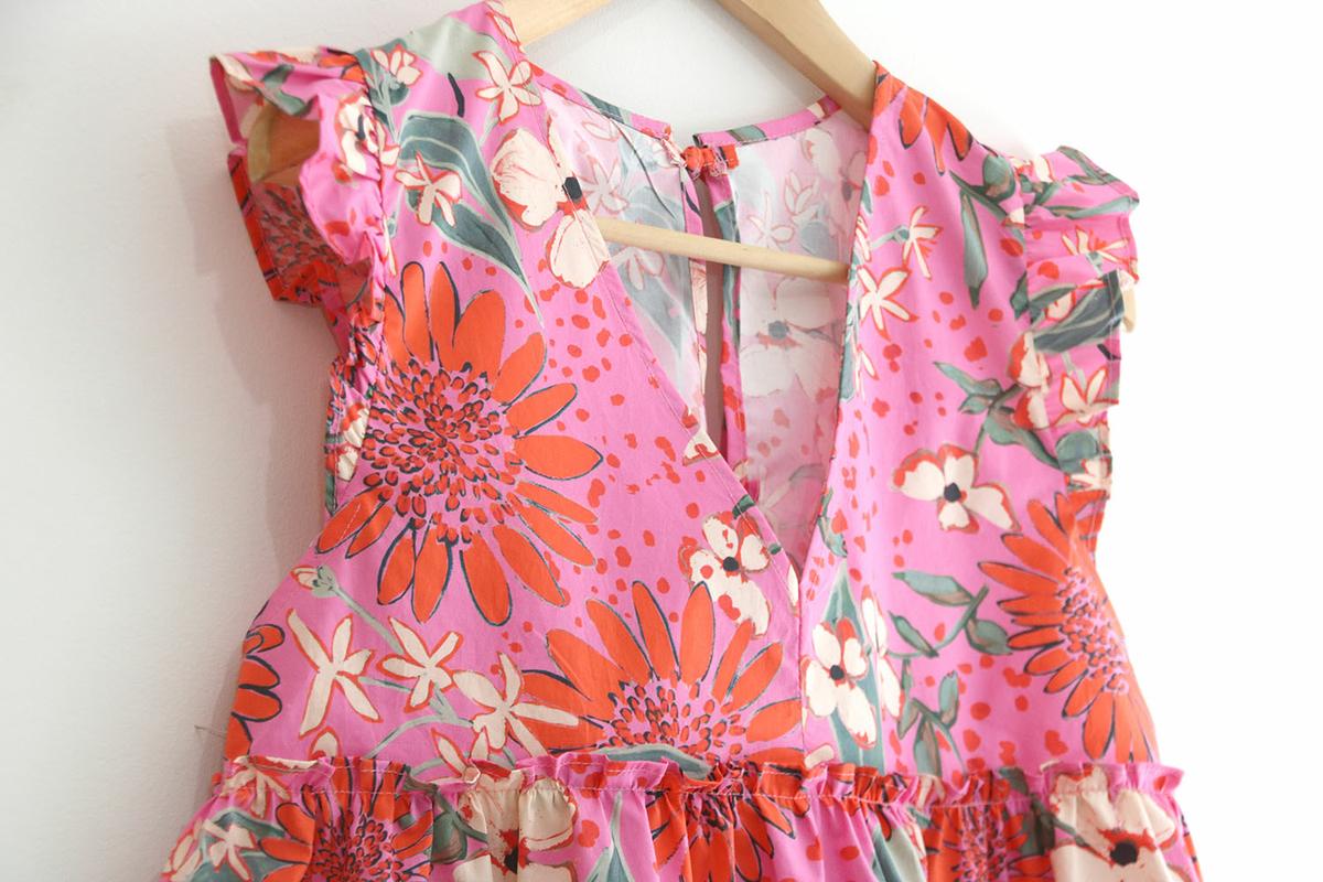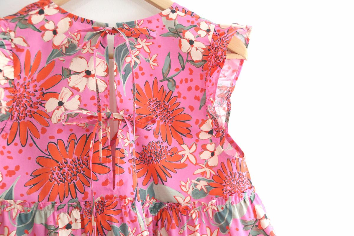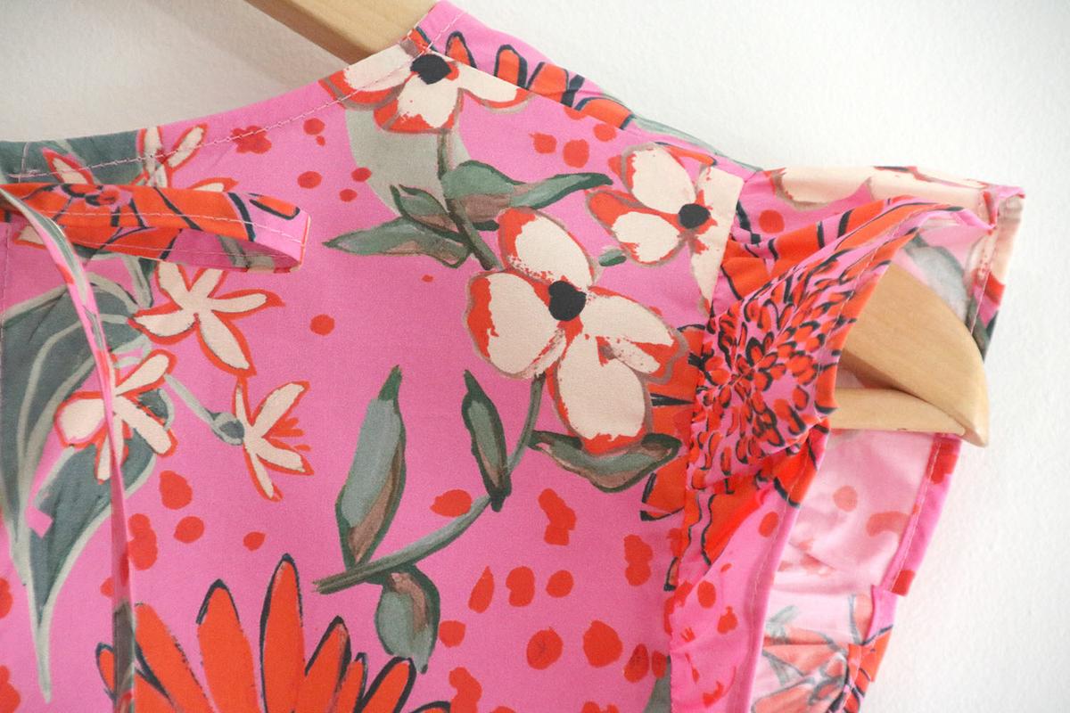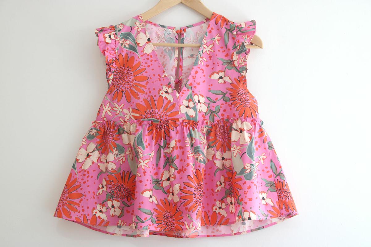 Seguro que cuando habéis visto la blusa habéis pensado: esta chica se ha vuelto loca, estamos en pleno otoño y esta mujer saca una blusa de los más primaveral, sin mangas con volantes y en rosa chicle con estampados…. Pues si, llámame loca, pero no voy a dejar atrás nada de lo que ya tengo hecho!!! Esta blusa la tenía planificada para sacar en agosto, pero mira como son las cosas de la vida, que uno planifica y las circunstancias mandan!!! Como mis circunstancias son las que son, y estoy feliz de poder no organizarme en absoluto por ver crecer a mis hijos (que conste que me agobia aveces lo de no poder planificar) es lo que hay y seguro que las seguidoras que están al otro lado del océano me agradecen mi falta de previsión, porque por allí si que está comenzando la primavera y verano.