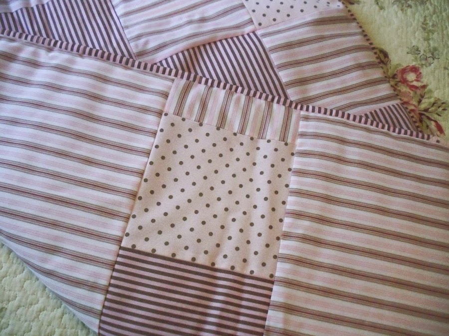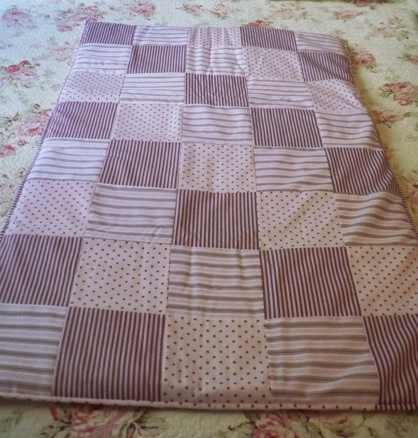 El edredón es muy sencillo, cuadrados de las tres telas unidos. La colcha tiene unas medidas finales de 80x130cm.