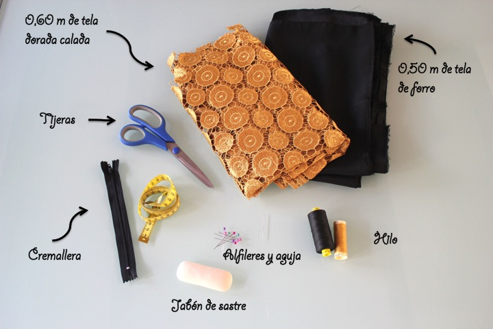 - 0,60 metros de tela dorada calda (medida que tu quieras).