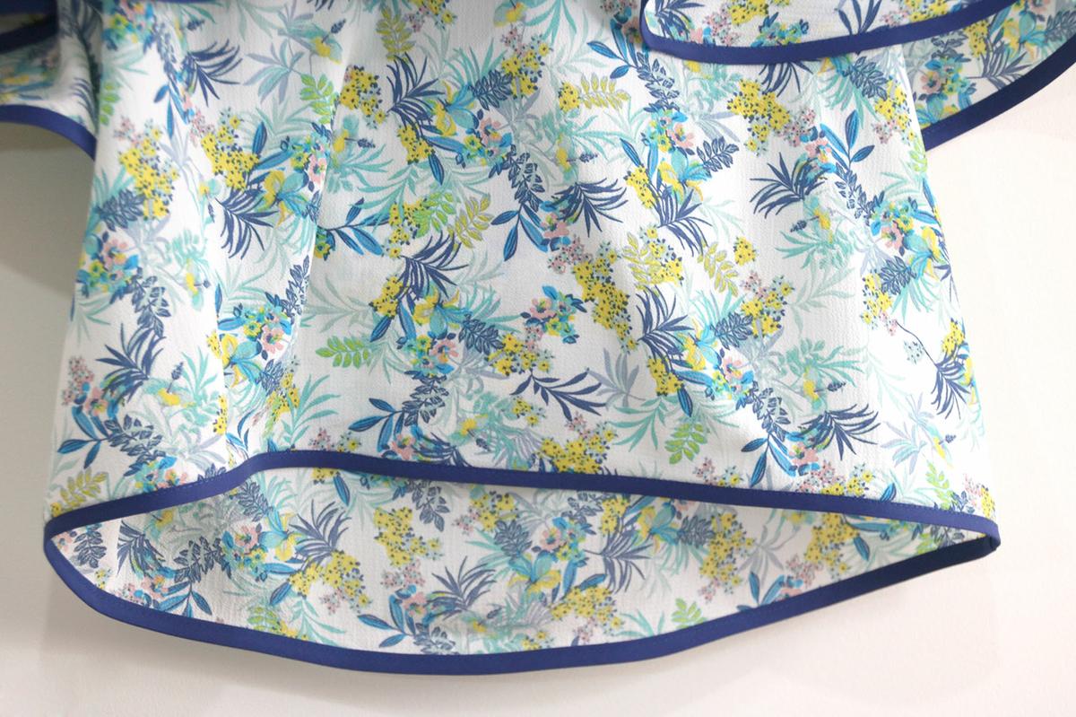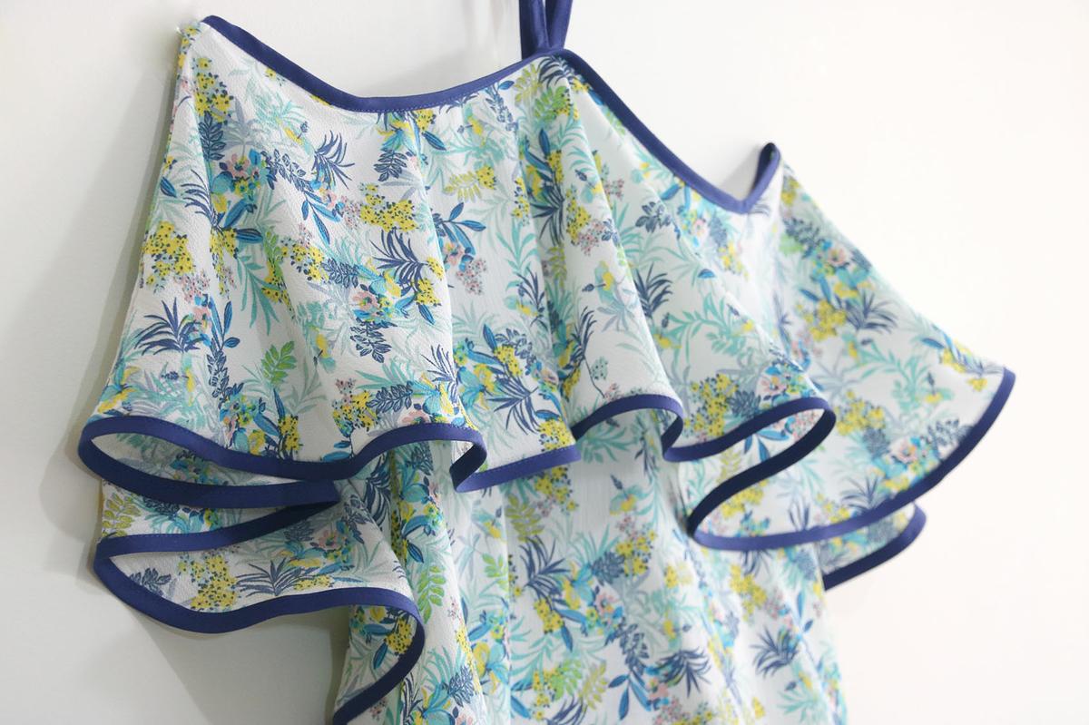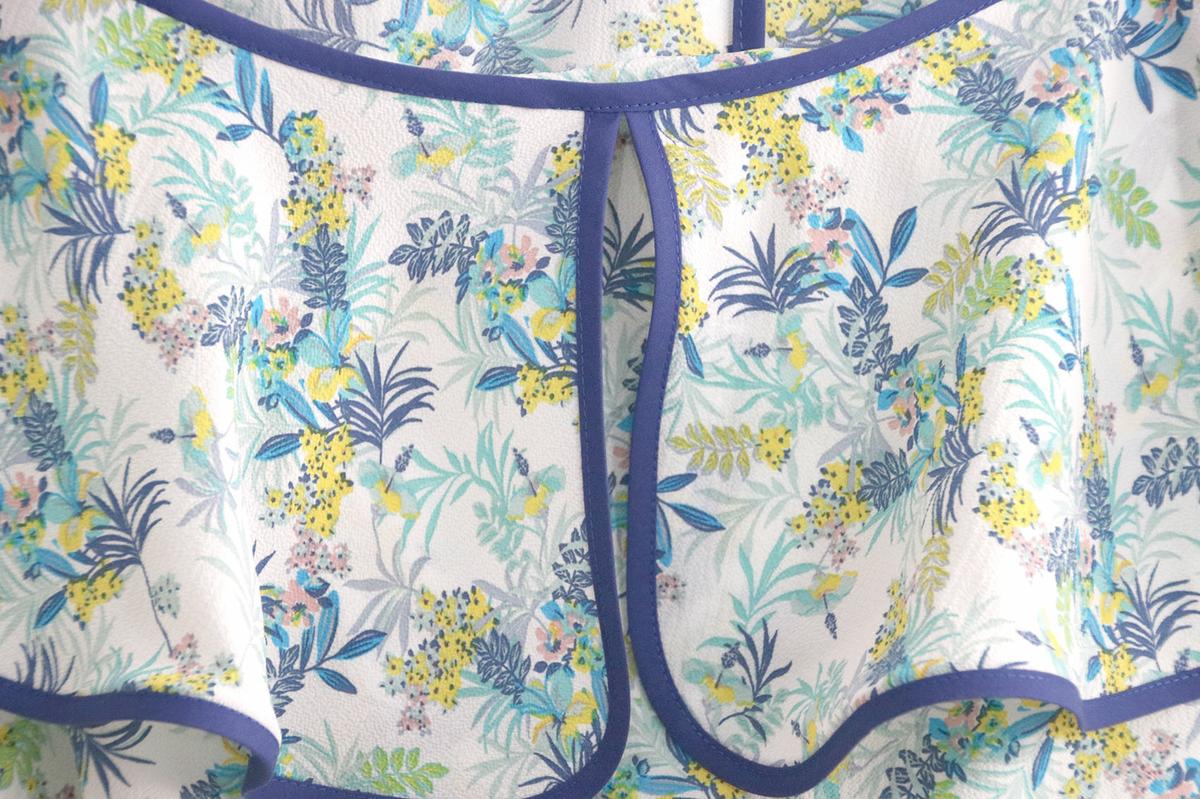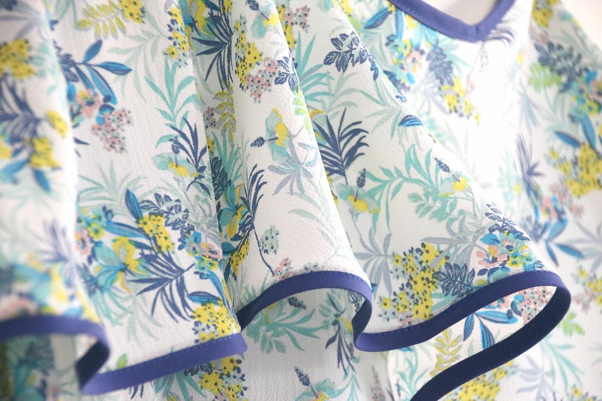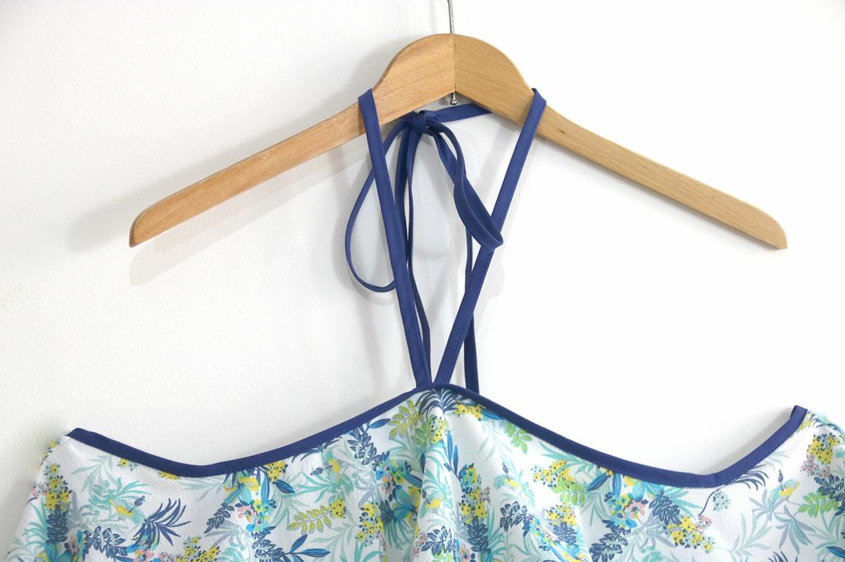 La tela la compré hace bastante tiempo. Para este modelo, podéis elegir telas veraniegas, con caída vaporosas como crepe, crespón, gasa, satén, bambula….
