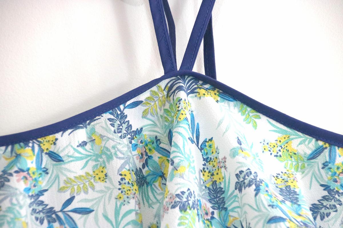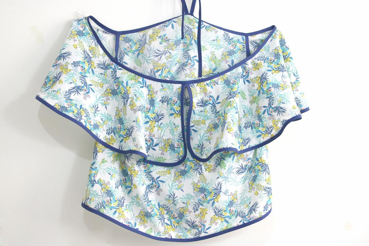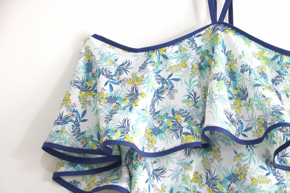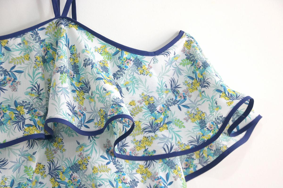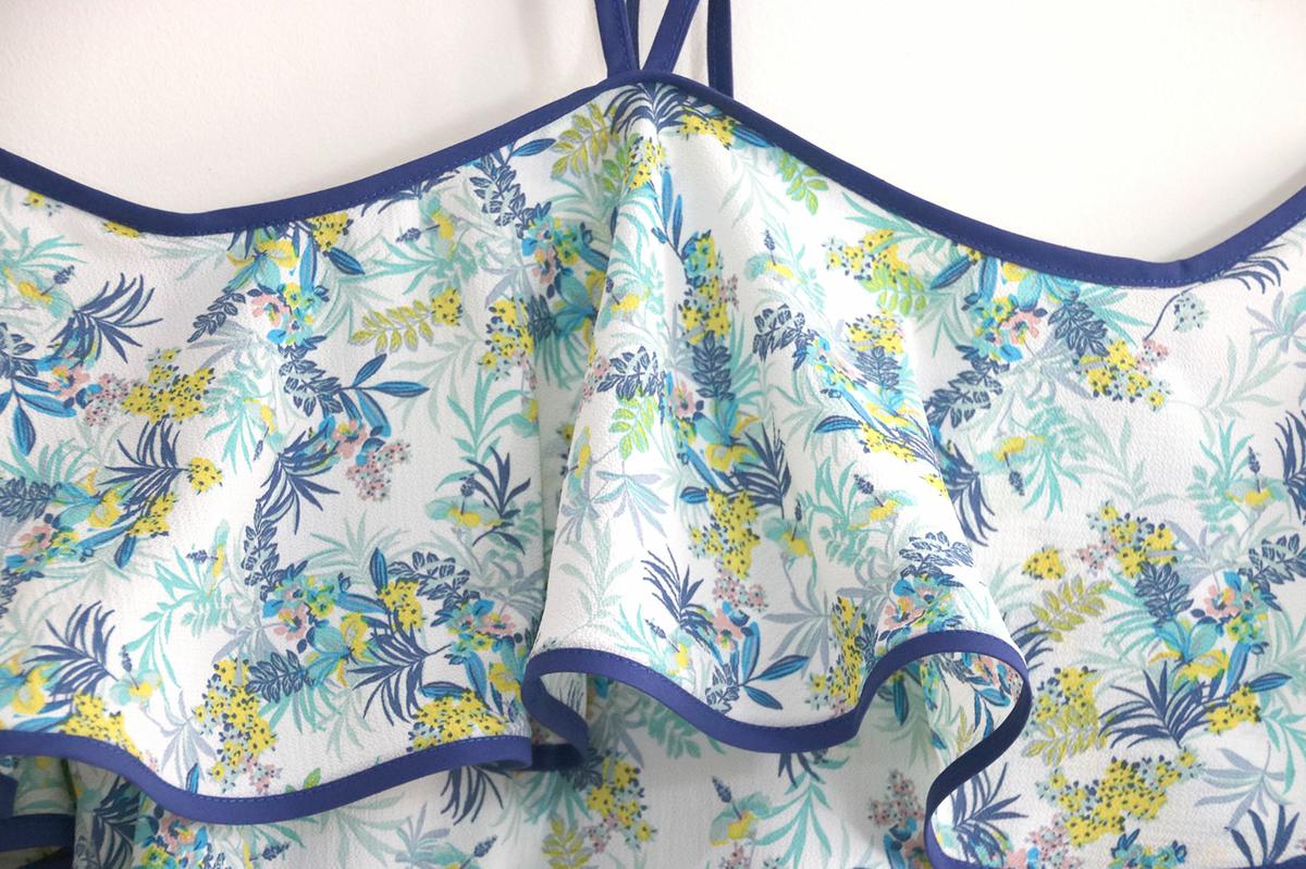 La tela la compré hace bastante tiempo. Para este modelo, podéis elegir telas veraniegas, con caída vaporosas como crepe, crespón, gasa, satén, bambula….