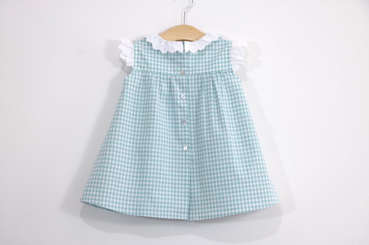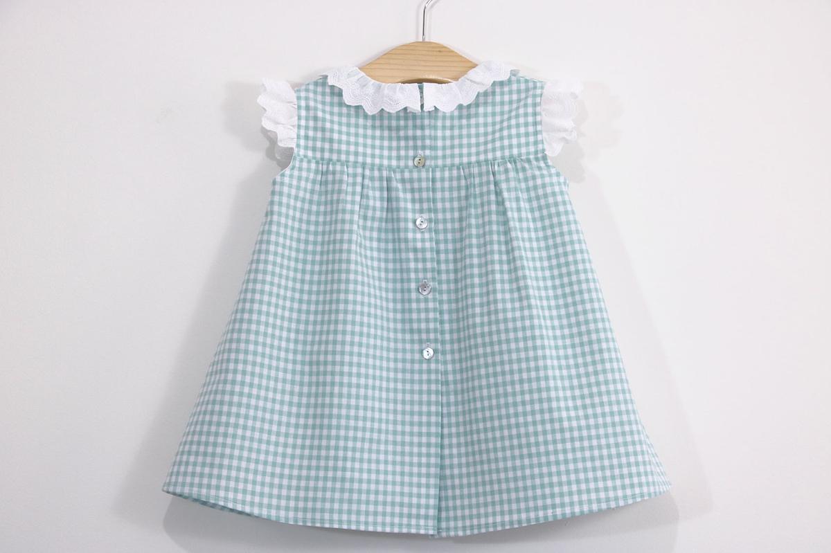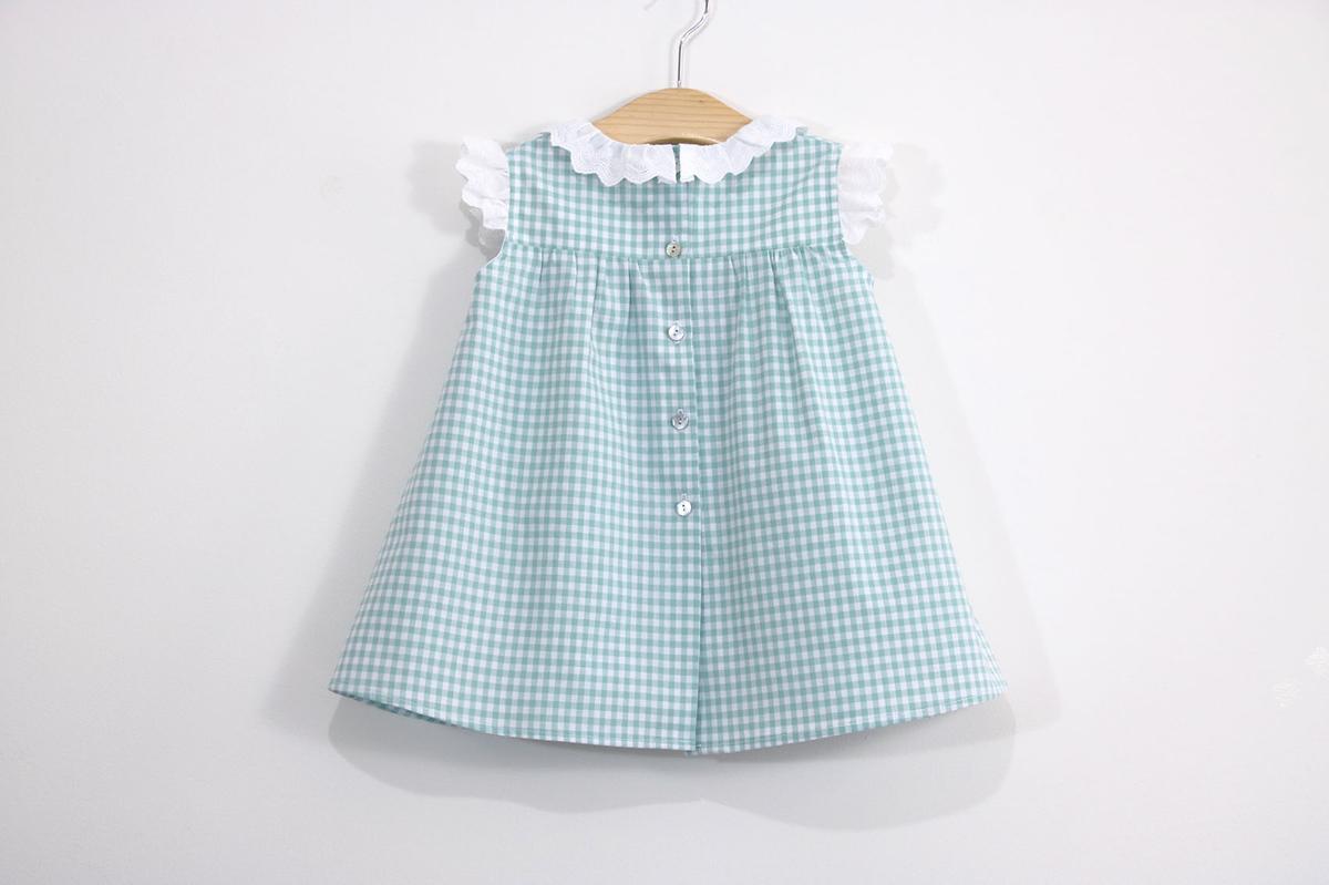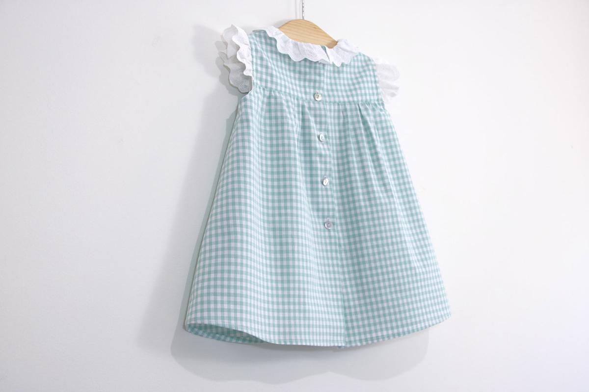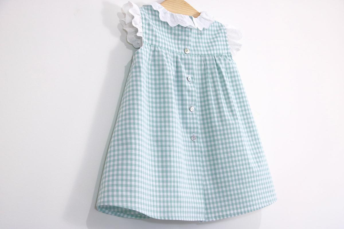 El vestido que hoy os traigo es un vestido de cuadros vichy en color verde, perfecto para la primavera, lleva la parte superior o canesú cruzada, y las terminaciones están confeccionadas con tira bordada.