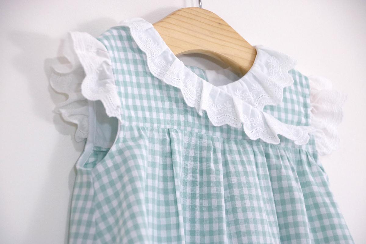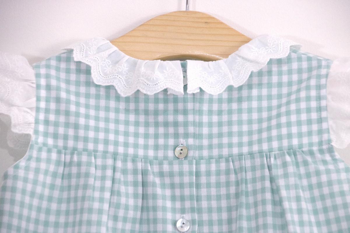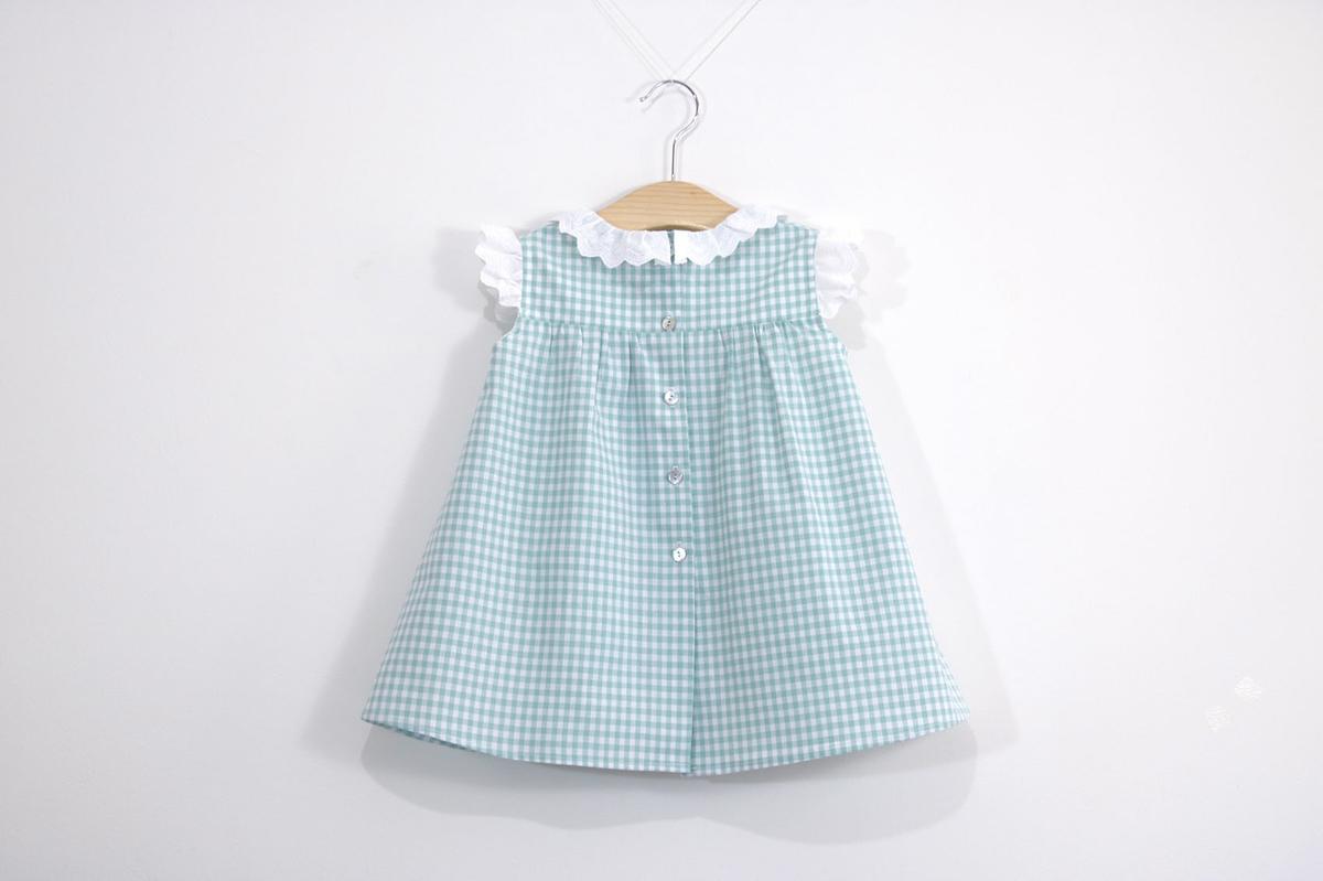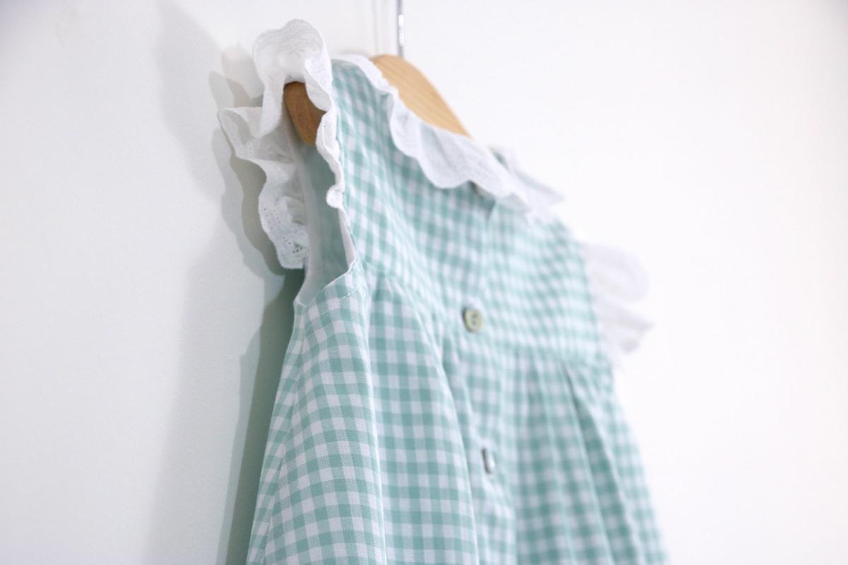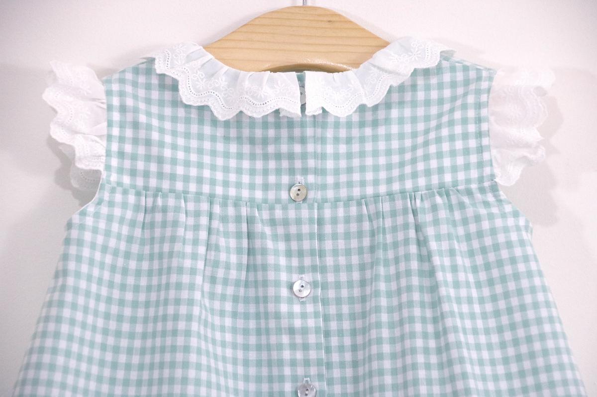 El vestido que hoy os traigo es un vestido de cuadros vichy en color verde, perfecto para la primavera, lleva la parte superior o canesú cruzada, y las terminaciones están confeccionadas con tira bordada.
