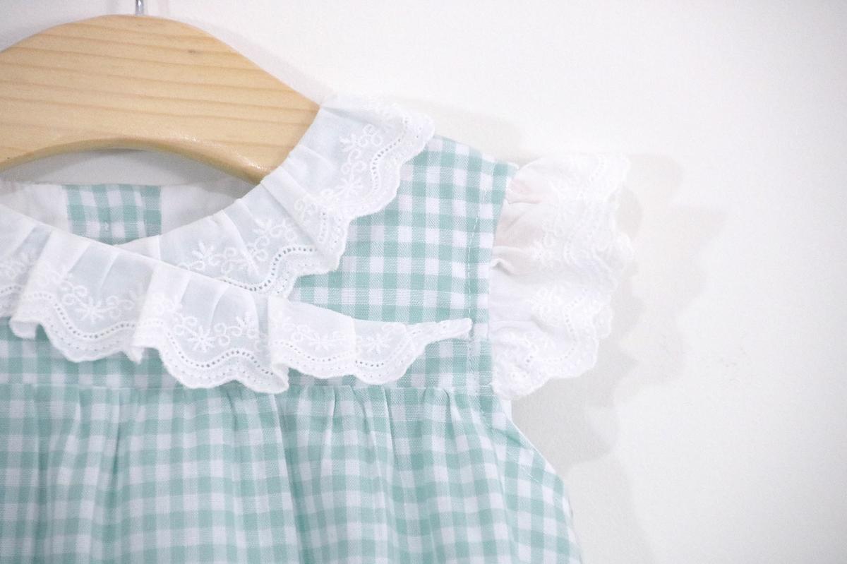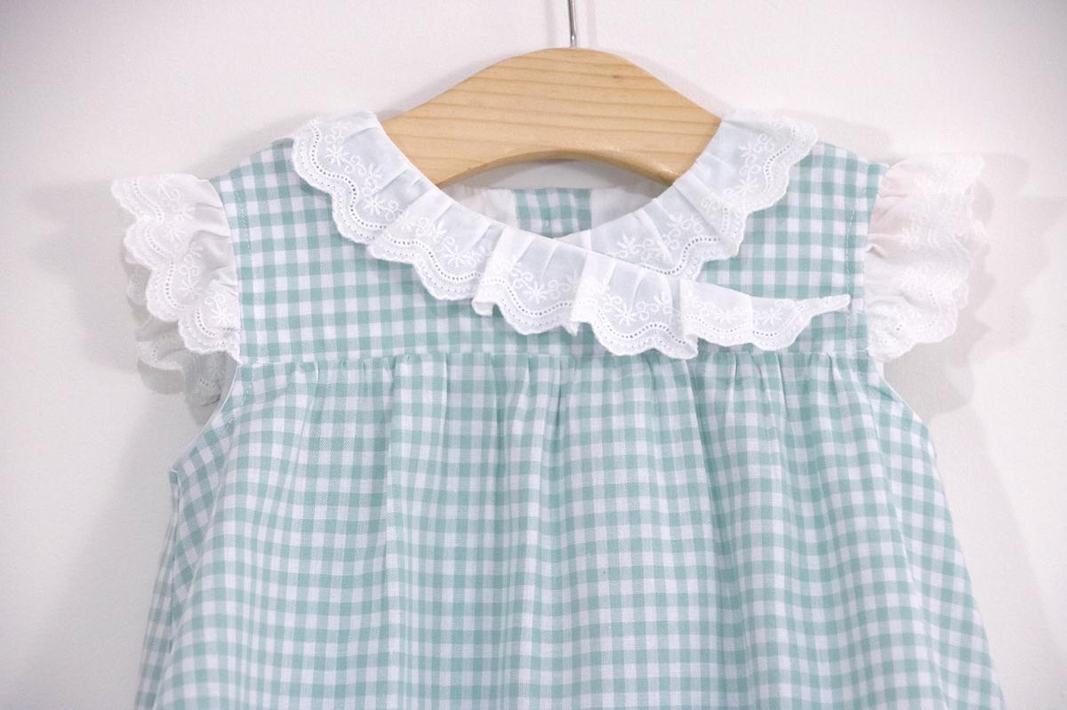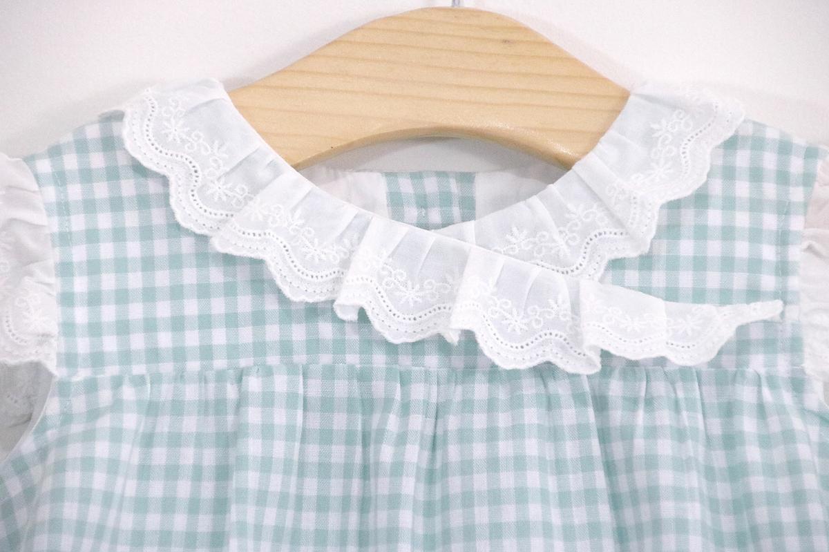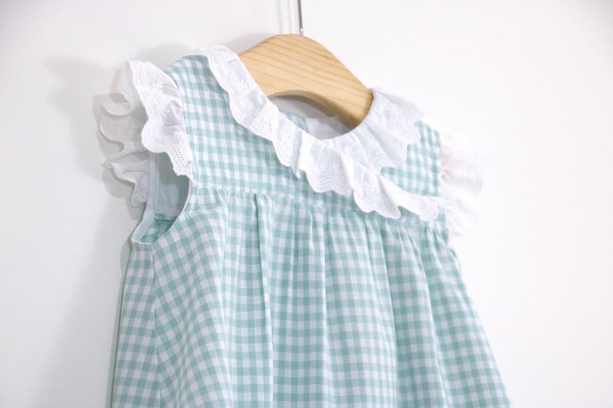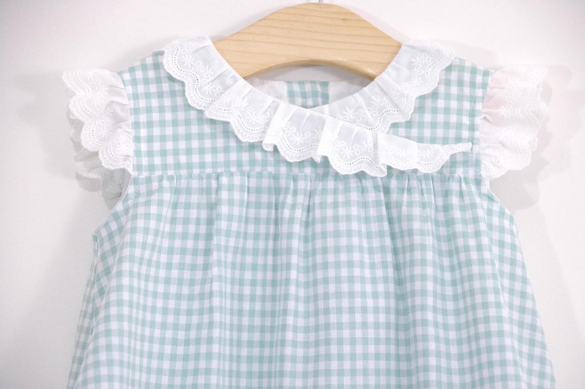 El vestido que hoy os traigo es un vestido de cuadros vichy en color verde, perfecto para la primavera, lleva la parte superior o canesú cruzada, y las terminaciones están confeccionadas con tira bordada.
