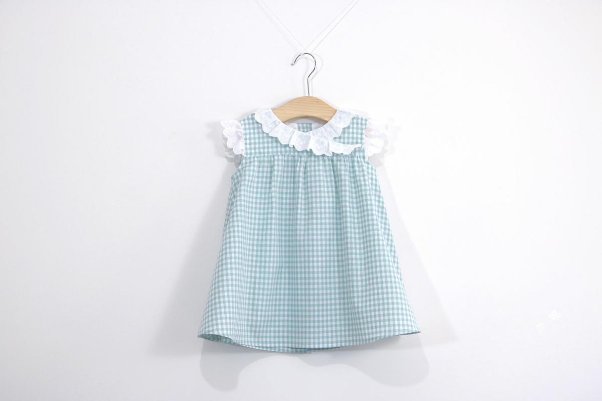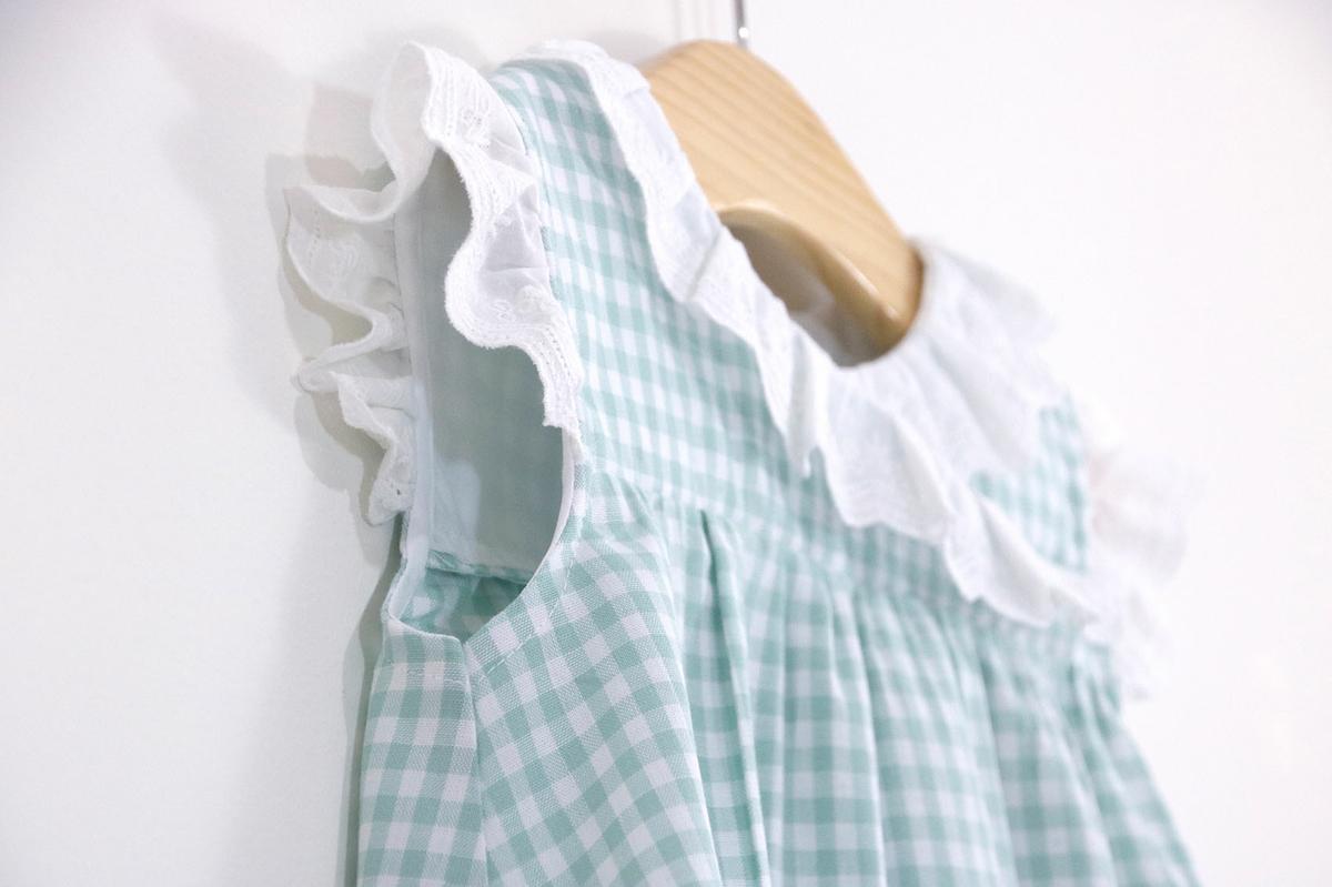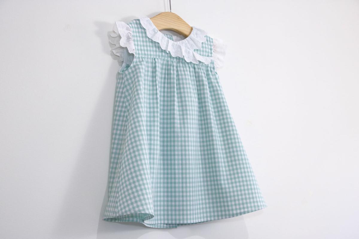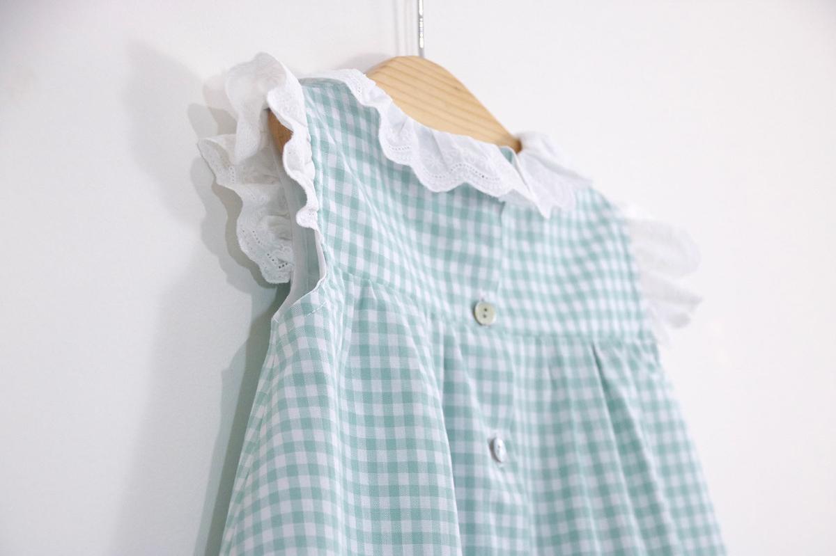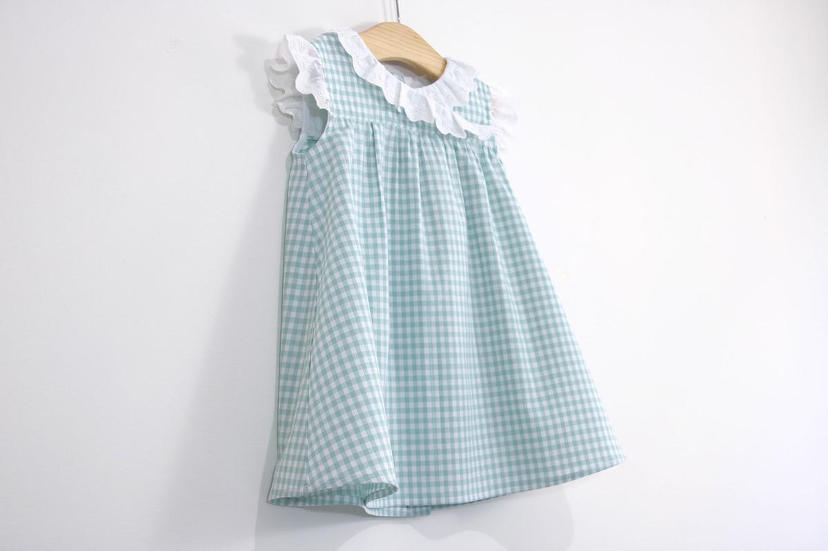 La tela que he elegido para este vestido es vichy de cuadros verdes manzana tipo camisería.
