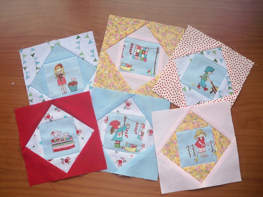 Estos bloques los acabé antes de que naciese Uxia, Enero 2015... lo sé, lo sé, más de 2 años guardados. Pero ahora ya están al lado de la maquina de coser, esperando su momento ;)