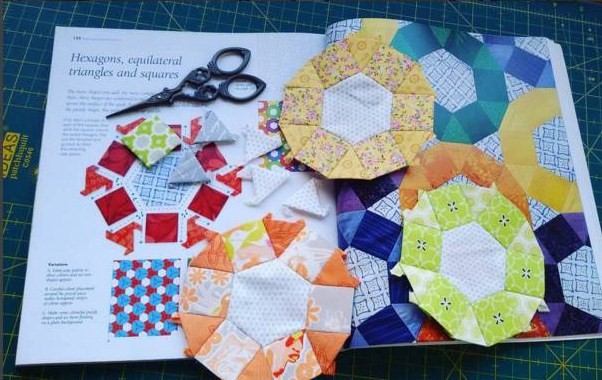 En este caso había que hacer un miniquilt o una funda de cojín con la técnica de EPP, English Paper Piecing.