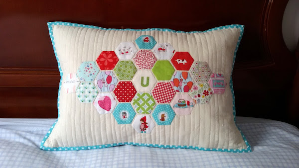 Este cojín me recordará siempre los hexágonos que me envió Livy.