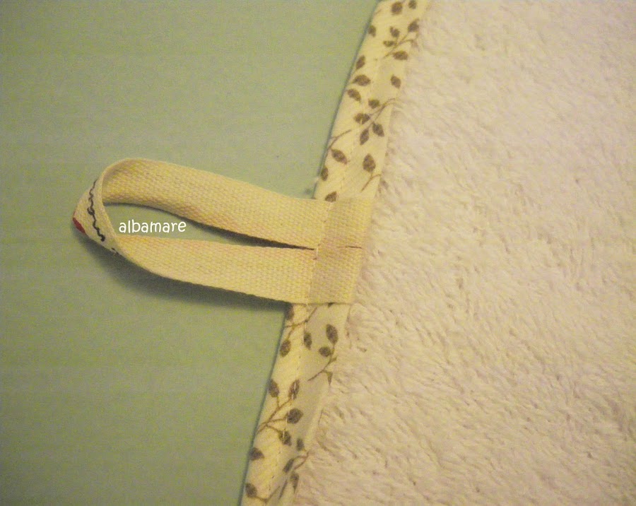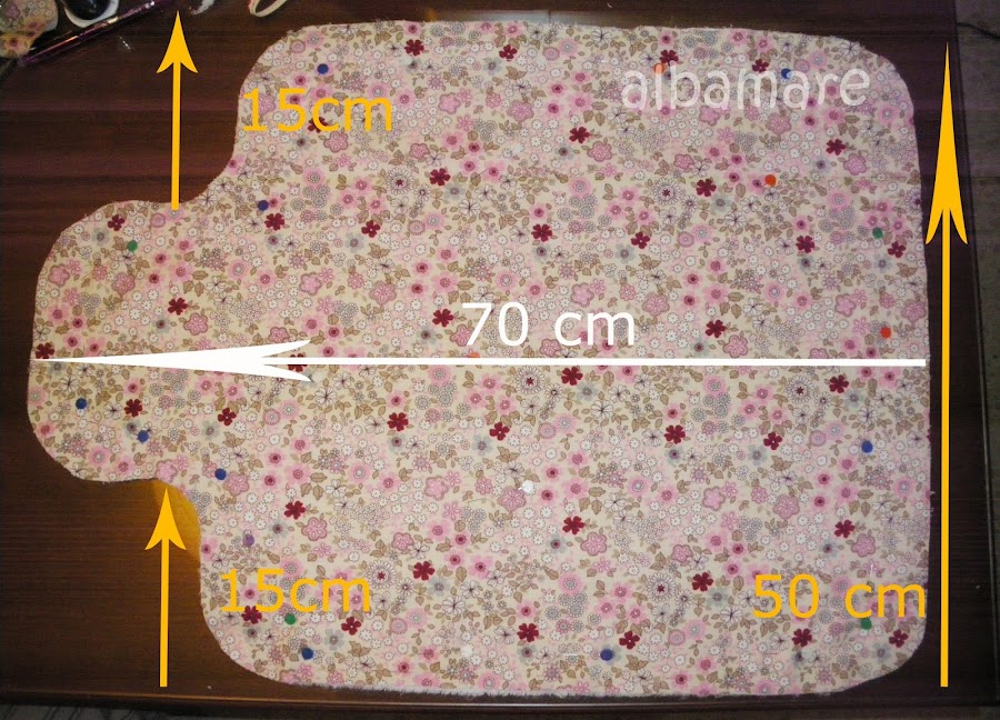 Cortamos nuestra tela estampada y toalla con las medidas indicadas en la foto que sigue: