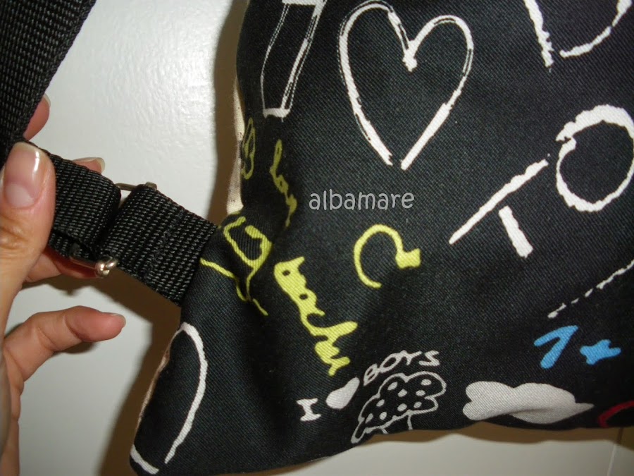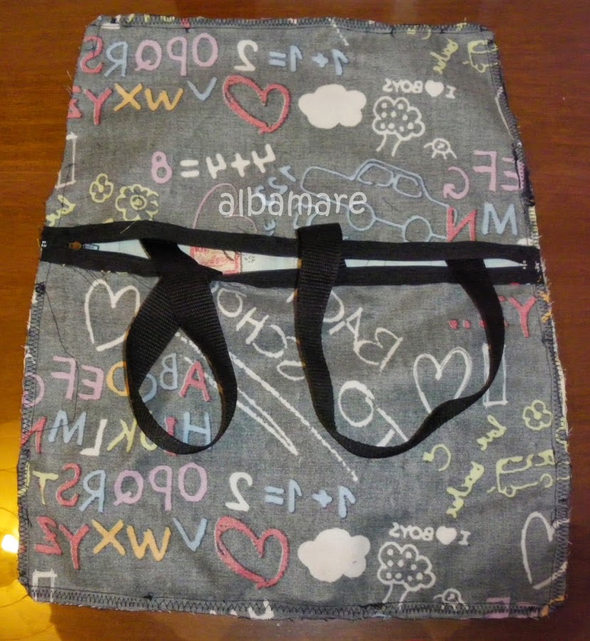 Las asas las debéis encarar hacia el interior para que cuando le déis la vuelta a la mochila queden así.