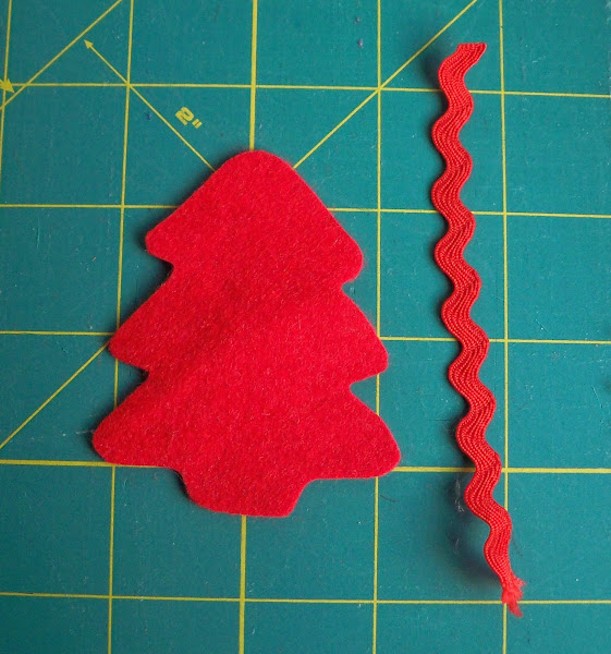 A la trasera del adorno le coseremos la cinta que luego usaremos para colgarlo del árbol. Yo he utilizado una cinta de zigzag, con un trozo de 12 cm por adorno será suficiente.