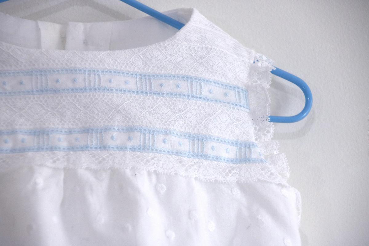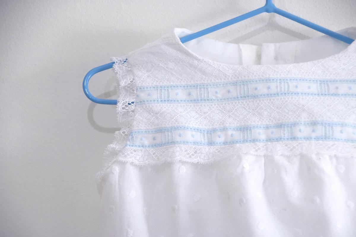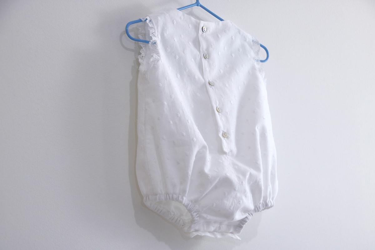 Este pelele lo hemos hecho para Jorge, con mucho amor, la verdad que yo no sabía muy bien como hacer este tipo de cosas con encaje valencie pero mi madre es una experta en hacer monadas como esta. De hecho, ella nos hizo los vestido de bautizo tanto para Santi como para los niños de mi hermano… Y no os imagináis lo bonitos que son, eso si… tienen mucha mano de obra totalmente artesanal, y una cantidad de encajes que necesitaría una semana de vídeos para enseñar todo el trabajo que tiene.