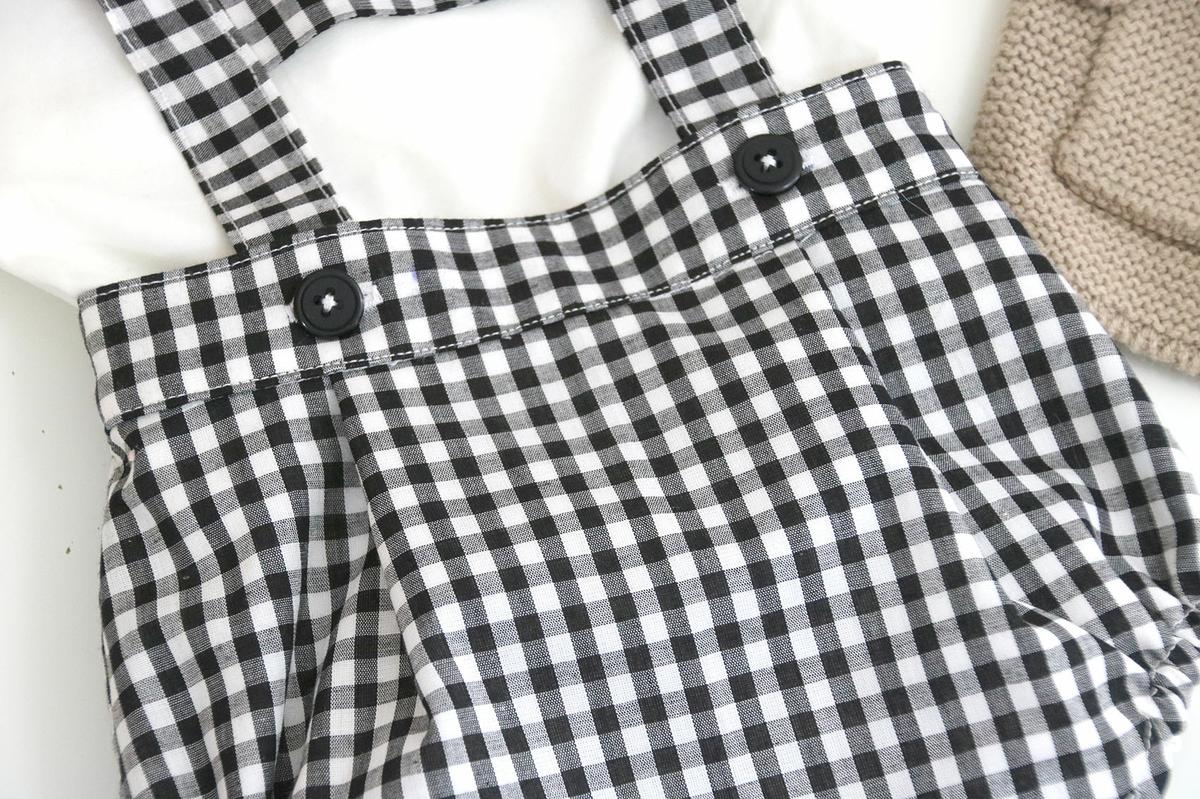 La tela que yo he utilizado es un vichy que está tan de moda esta temporada, los cuadros blanco y negros van a arrasar entre los más pequeños!