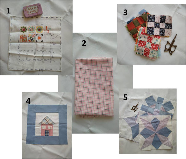 Estos bloques los tengo abandonados desde hará dos años. Se me acabó alguna de las telas azules y ya no seguí cosiendo los bloques que salían cada mes en el blog. Tuve algunos problemas con estos bloques y tienen distinta medida final. A ver que ideo para acabar haciendo algo "usable".