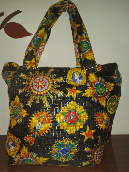 Asas. Para las asas he usado la misma tela que el estampado del bolso. Se hacen una tiras de la longitud deseada, se cosen los estremos y se les da la vuelta para que quede la costura dentro y luego se cosen al bolso. Podeis coserlo haciendo un corte a la tela y pasándolo por dentro, o dejándolo por fuera y rematarlo fuerte, o coserlas a una costura para que quede mejor fijado...En fin, que hay un montón de maneras y cada una depende de la complejidad, imaginación y gusto de cada uno. Elegid el que más os guste y sea más creativo para vosotros.