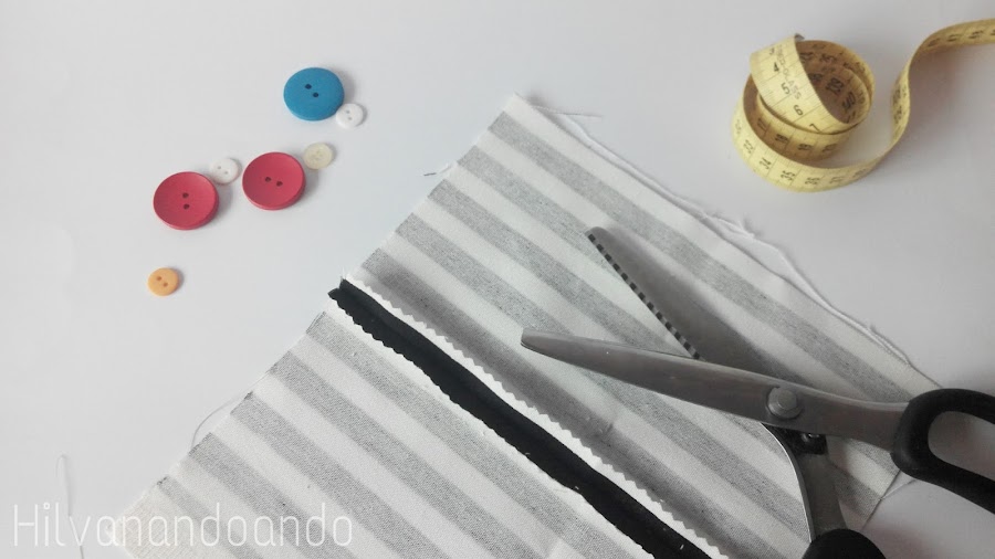 4._ Tijeras de zig-zag: la forma más rápida es cortar las telas con tijeras de zig-zag, ten en cuenta que sólo funcionará con telas que se deshilachen poco.