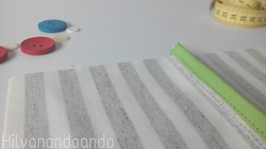 3._ Rematar con bies: unir las dos telas y tapar la COSTURA con un bies. Muy útil si haces un bolso o un neceser sin forro.
