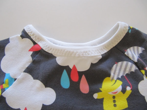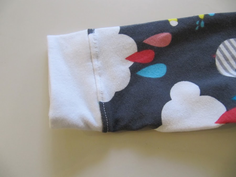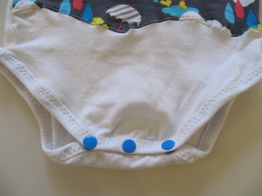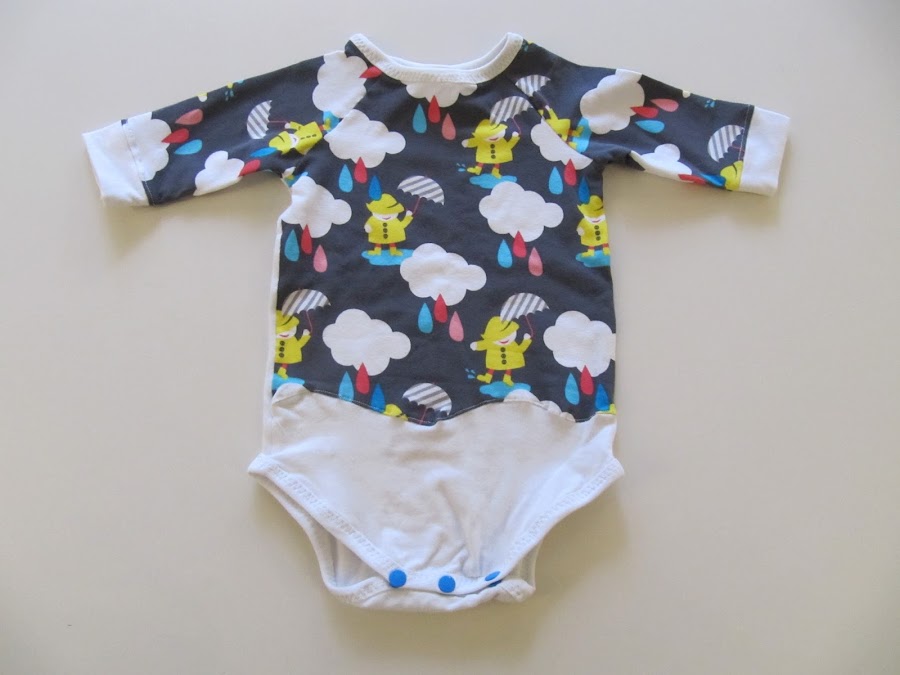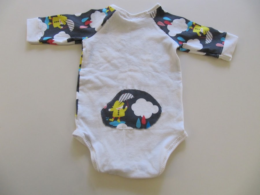 Me quedaba todavía un retalito después de haber cosido la camiseta "Cantando bajo la lluvia" al peque y uno conjunto de bebé para un regalo.