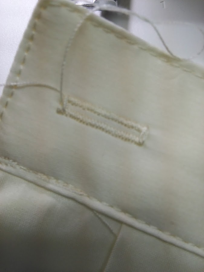 El puño de la camisa con su ojal, confeccionado a máquina.