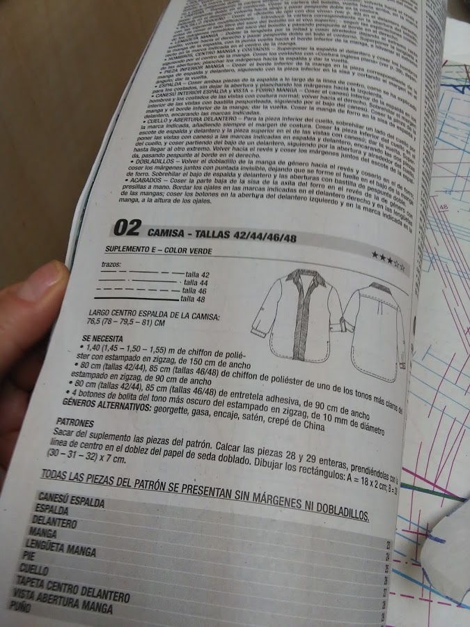 La camisa que he confeccionado este fin de semana, es el modelo 02 de la revista de este mes en la talla 42. Es la que sale en la portada, a falta de plancha.
