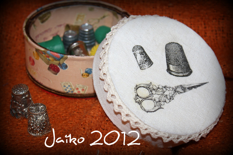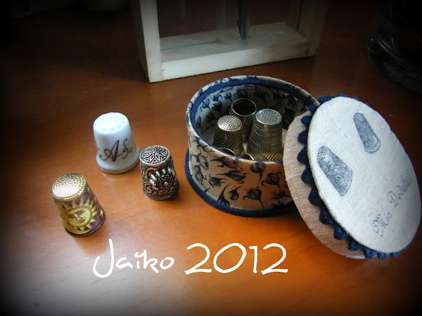 Me he propuesto organizar un pequeño rincón de costura (a mi no me da para un cuarto completo, snifff...) y voy empezando la casa por el tejado, 1º los pequeños detalles como los que os voy enseñando ultimamente, no sea que entre medias me toque una primitiva jejejejjeje.