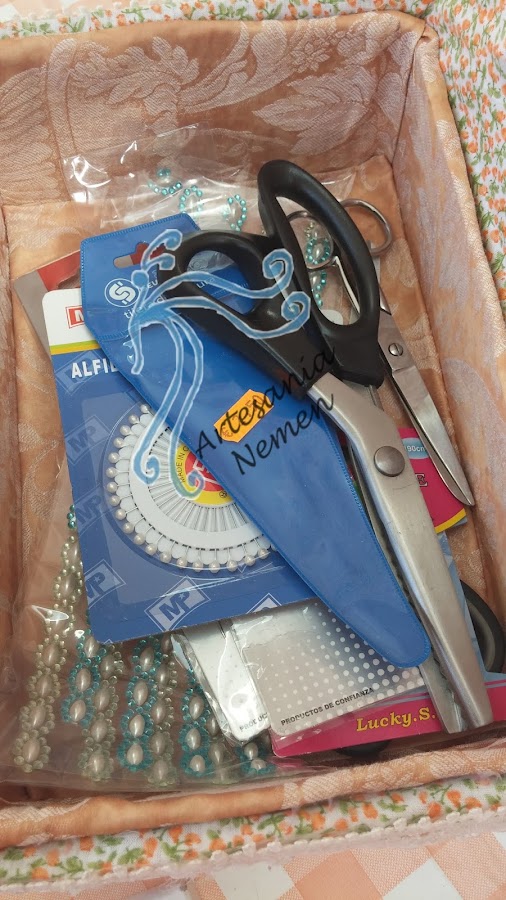 Y este es el resultado, dentro caben, tijeras, cintas, hilos ... y en un momento determinado puede estar a la vista con todo recogido, que es de lo que se trata.