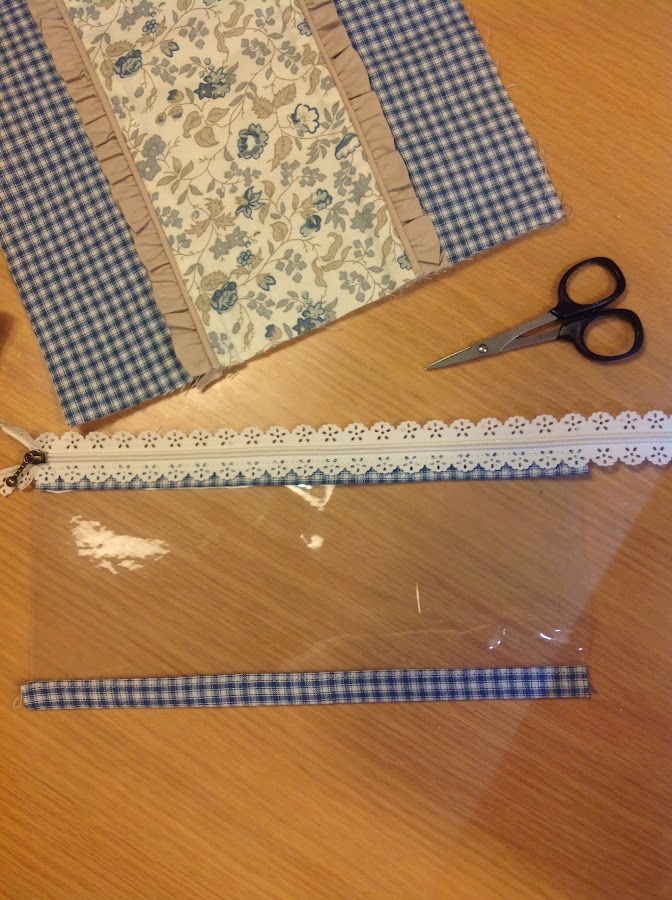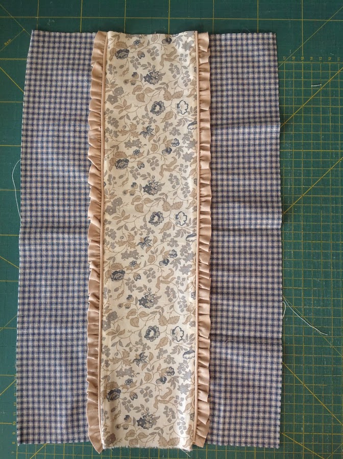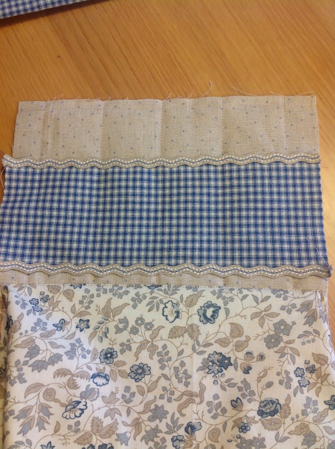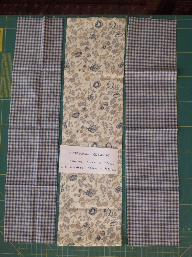 Unir con un pespunte las tres telas del exterior, adornar con cinta, puntilla... al gusto de cada una. Fijar por el revés con la plancha la guata termoadhesiva y cortar con las medidas exactas: 42cm x25cm