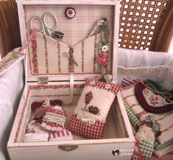 Como complemento un alfiletero combinado en crudo y vichy rojo