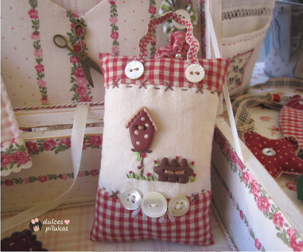 con unos bordaditos, una pajarera y una valla que hice en arcilla.