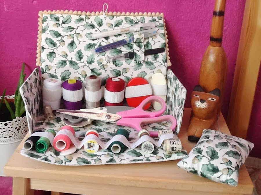 Y ahora os cuento: me he hecho una bolsa nueva para las labores, que ya os enseñaré,y luego me puse con este costurero para que entre bien en la bolsa.