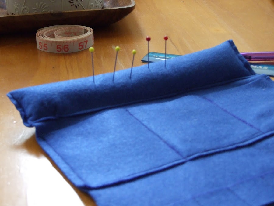 En uno de los extremos podemos coser un acerico o alfiletero, eso es opcional , pero como a mí me parece buena idea , pues la haré.