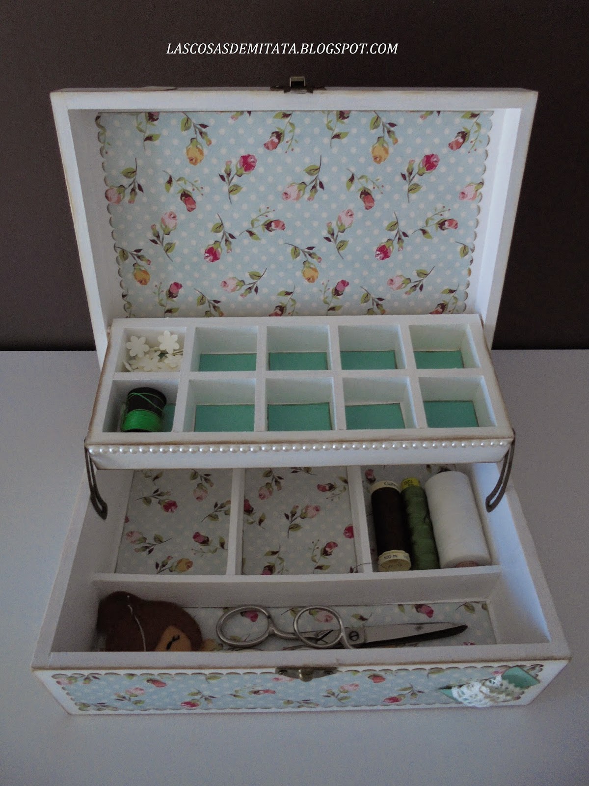 La verdad que no tengo claro a qué estilo corresponde... costurero shabby quizás?? No estoy segura pero si que está hecho a mi gusto porque este es para mí.