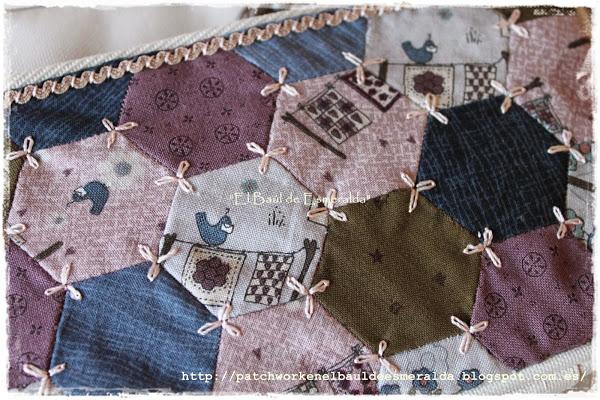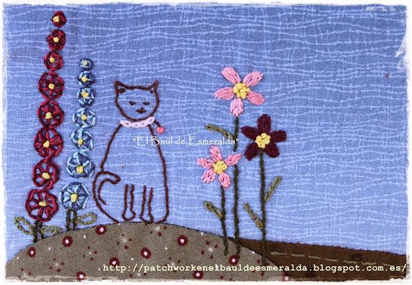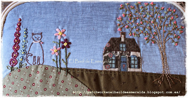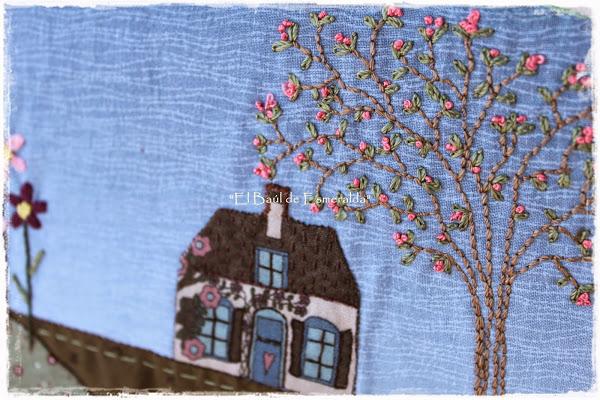 La parte delantera combina el bordado con algo de aplicación. Lo bordé con unos hilos de seda, era la primera vez que los usaba, y realmente es muy agradable y la labor queda muy vistosa.