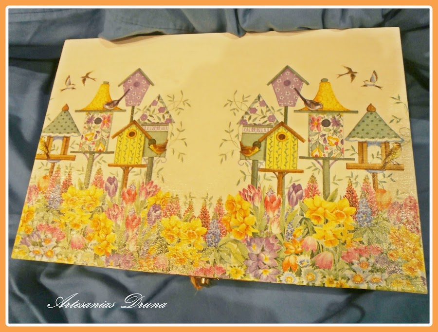 Esta cajita de madera me la consiguió mi querida Mar, y se fue para mi querida Mamen. Está realizada con acrílicas, entelada con doble faz y stencil.También va decorada con tela de arpillería barnizad ...