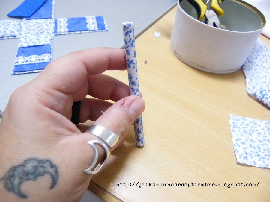 5) Una vez forradas podemos preparar las cintas o bolsitos que vayamos a poner para sujetar los accesorios.