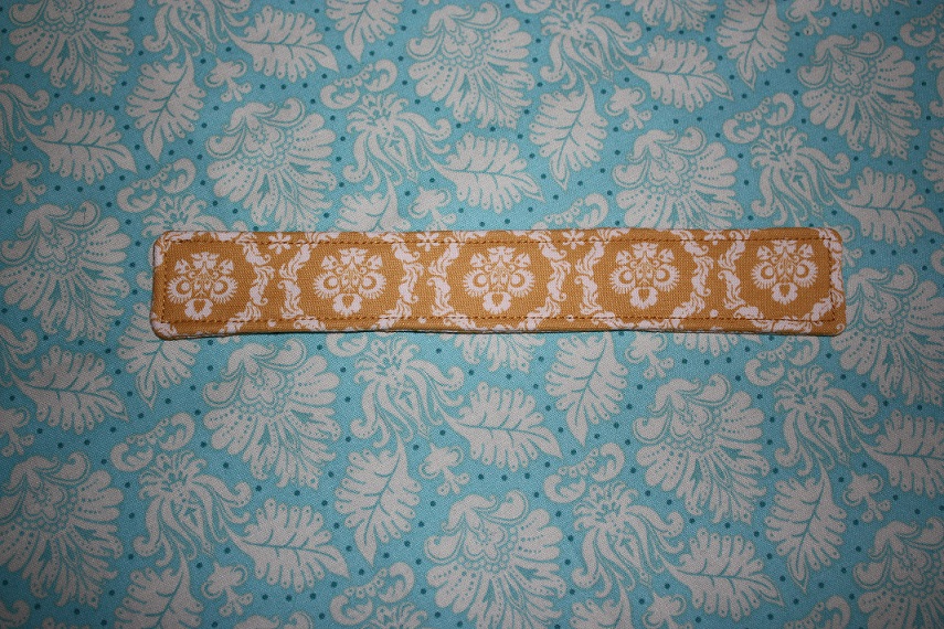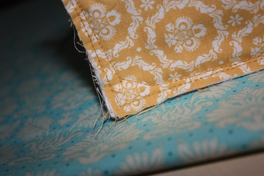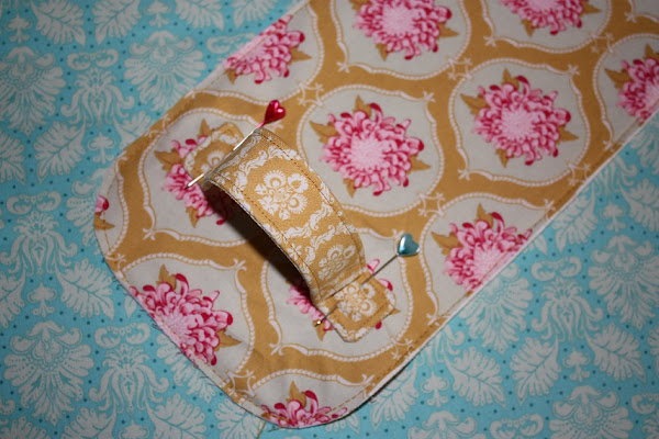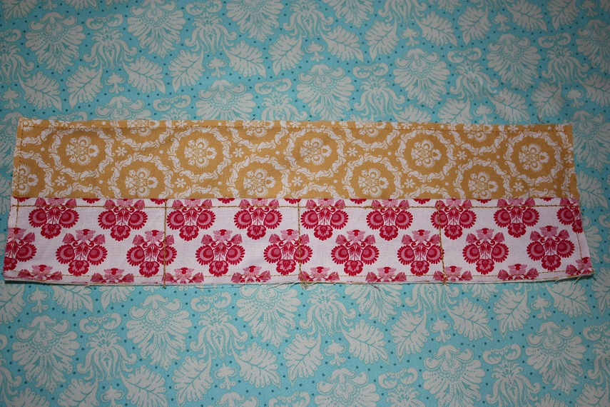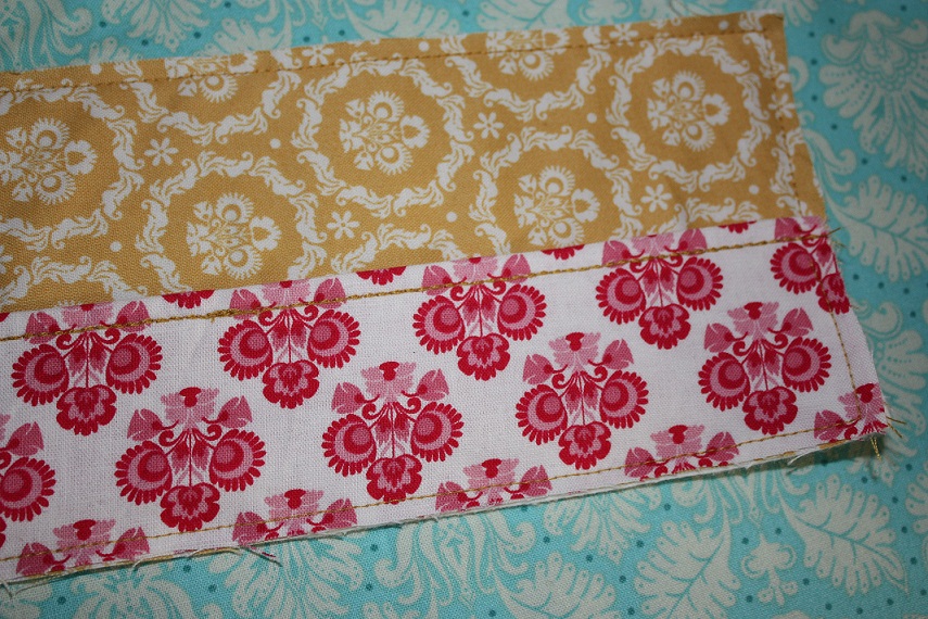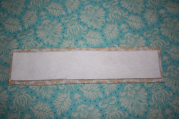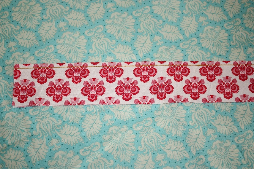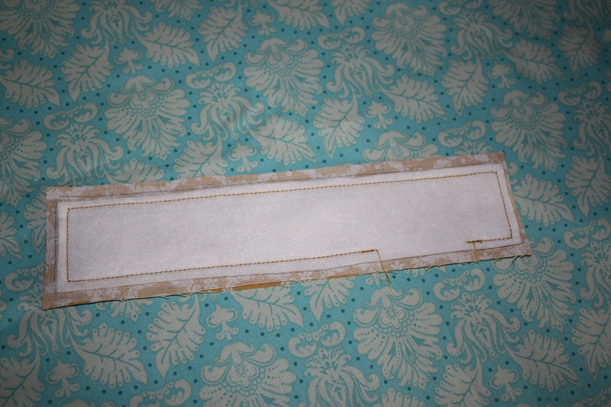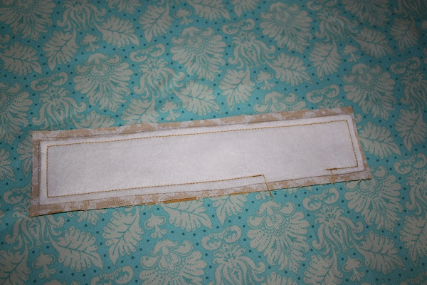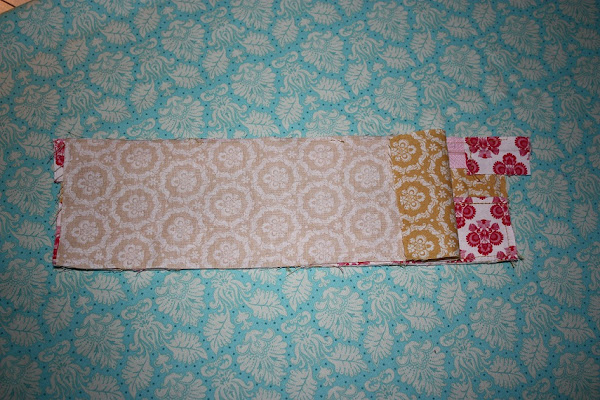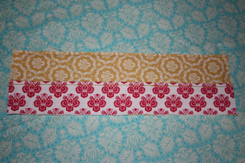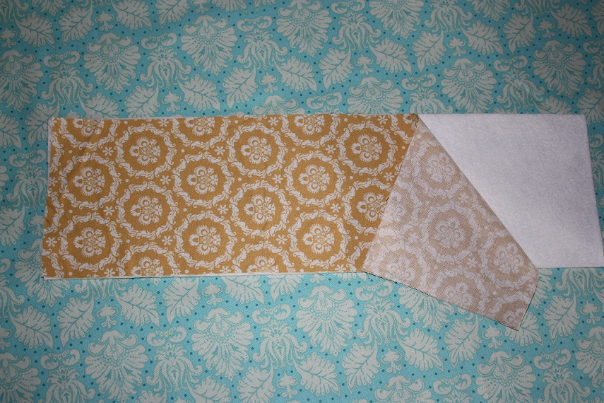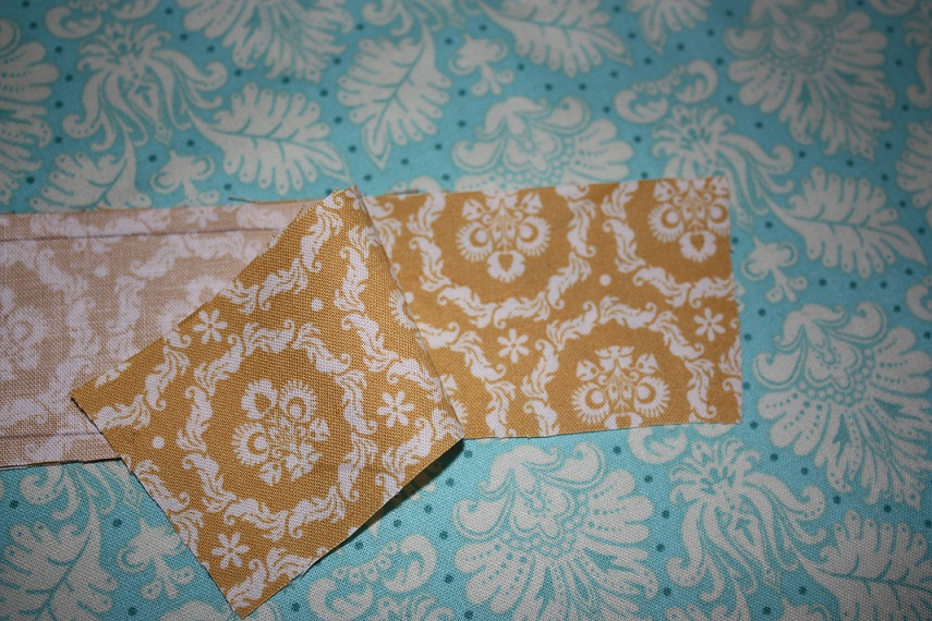 insertar el lado derecho de una de las pequeñas piezas de tela.