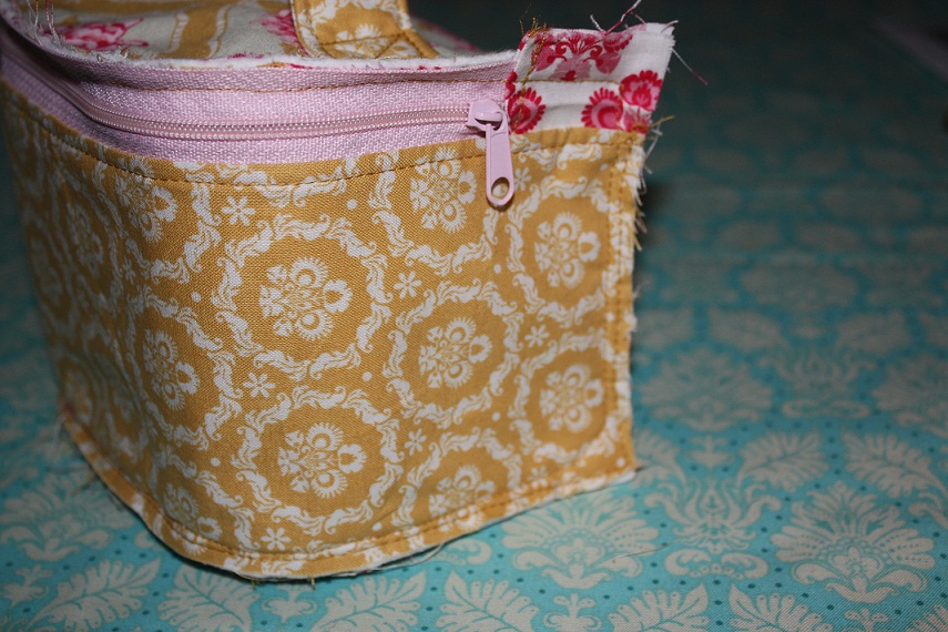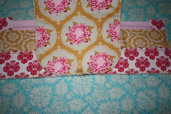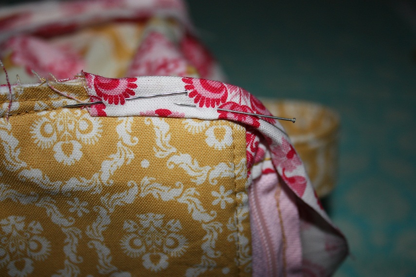 Ahora colgar el material para los compartimentos interiores con la costura cosida hacia el centro y cerca del borde de coser bordes.